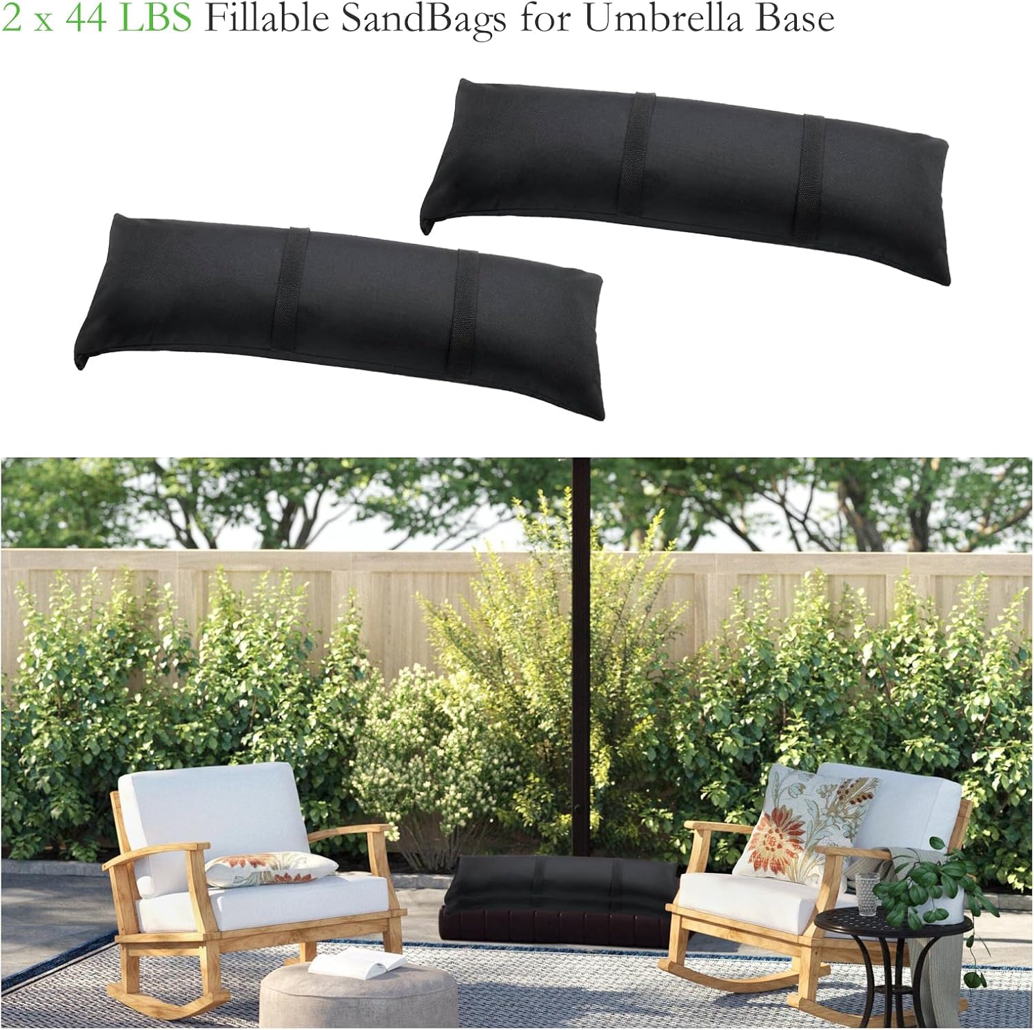 2Pcs Umbrella Base Weight Sand Bags 2 x 44 LBS Fillable Empty SandBags, Outdoor Poolside Accessories Heavy-Duty for Garden Backyard Furniture Trampoline Patio Black