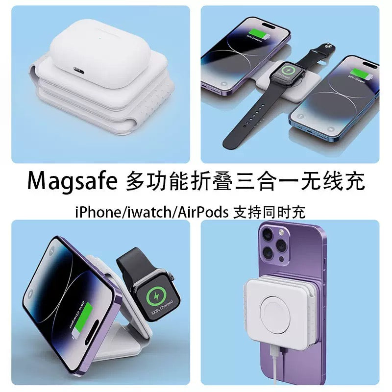 3-in-1 charging station, wireless charging dock, fast charger stand, phone and watch charger, earbuds charging station, Qi-enabled charger, multi-device charging stand, desktop charging station, portable charging dock, smart device power hub.