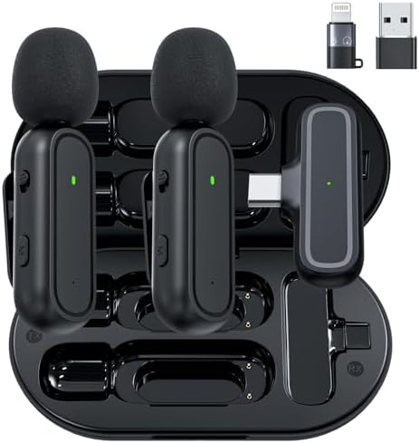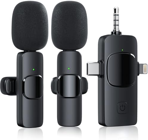 - 【3-in-1 Wireless Lavalier Microphone】:This wireless lavalier microphone set includes 2 microphones and 1 3-in-1 universal receiver with three ports (Lightning, USB-C/3.5 mm Jack). Suitable for a wide range of devices: including iPhone and Android phones, cameras and laptops, iPad and more. Ideal for recording conversations and interviews, you don't need to carry multiple separate interfaces or interface cables when recording.