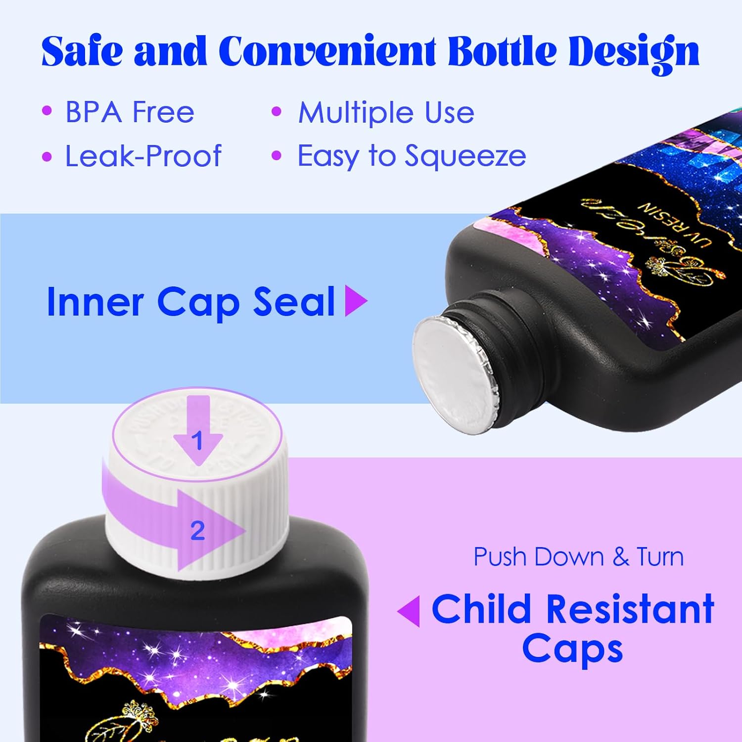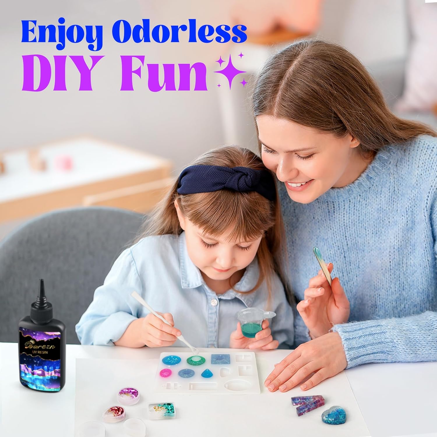 UPGRADED FORMULA: Bsrezn UV activated resin uses high-grade and environmentally friendly raw materials and is formulated with an exclusive formula, which can significantly reduce the odor of UV glue and greatly shorten the curing time. Not only will you be free from unpleasant odors, but you will also be able to enjoy the results of your work in the shortest possible time.