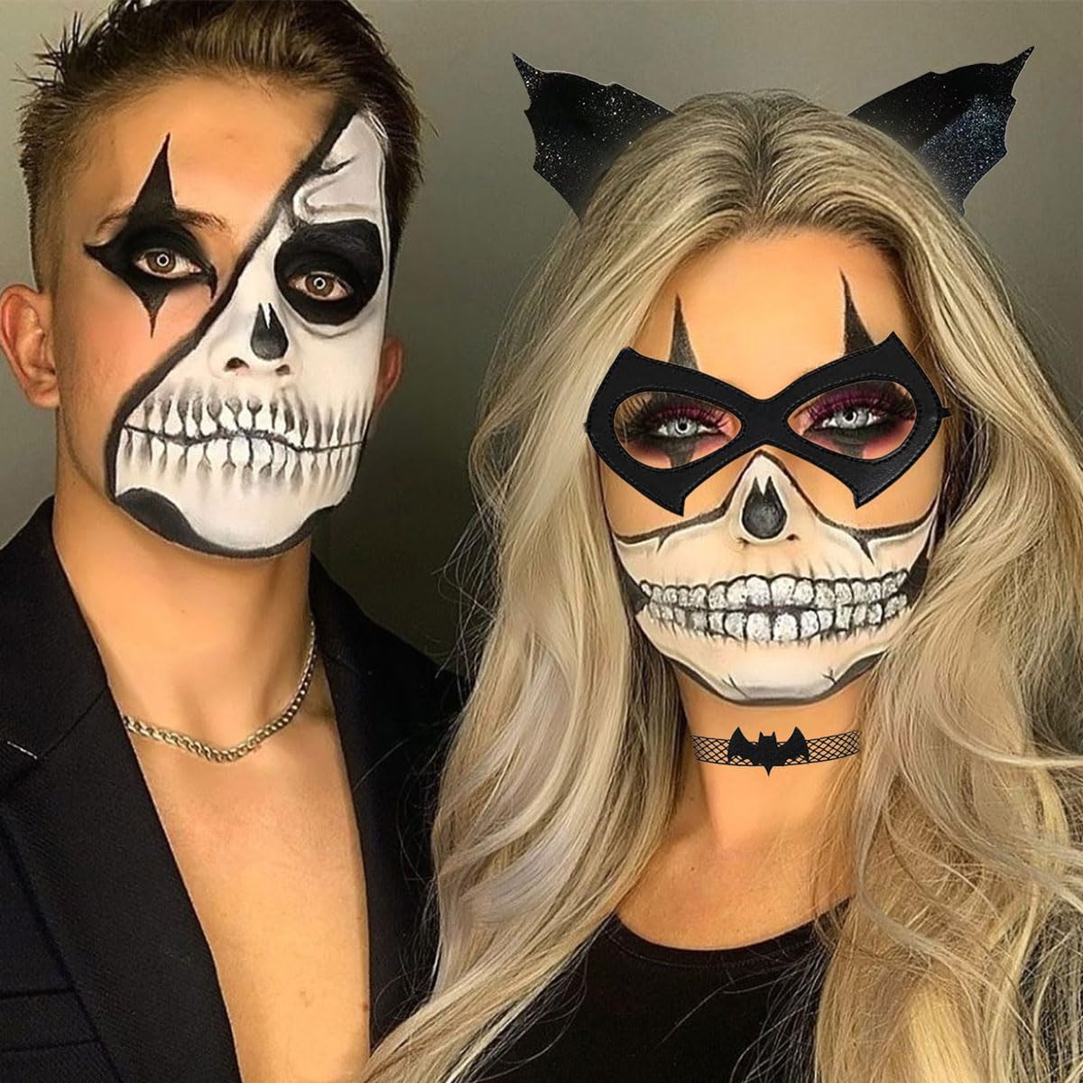 - 【Halloween Headband】The black bat costume set is designed in the style of cute bats, the combination of bat ears hairband, collar and bat mask will complete your dress up and make you attractive at the party, the glitter cat ears headband will make you more lovely and attractive
