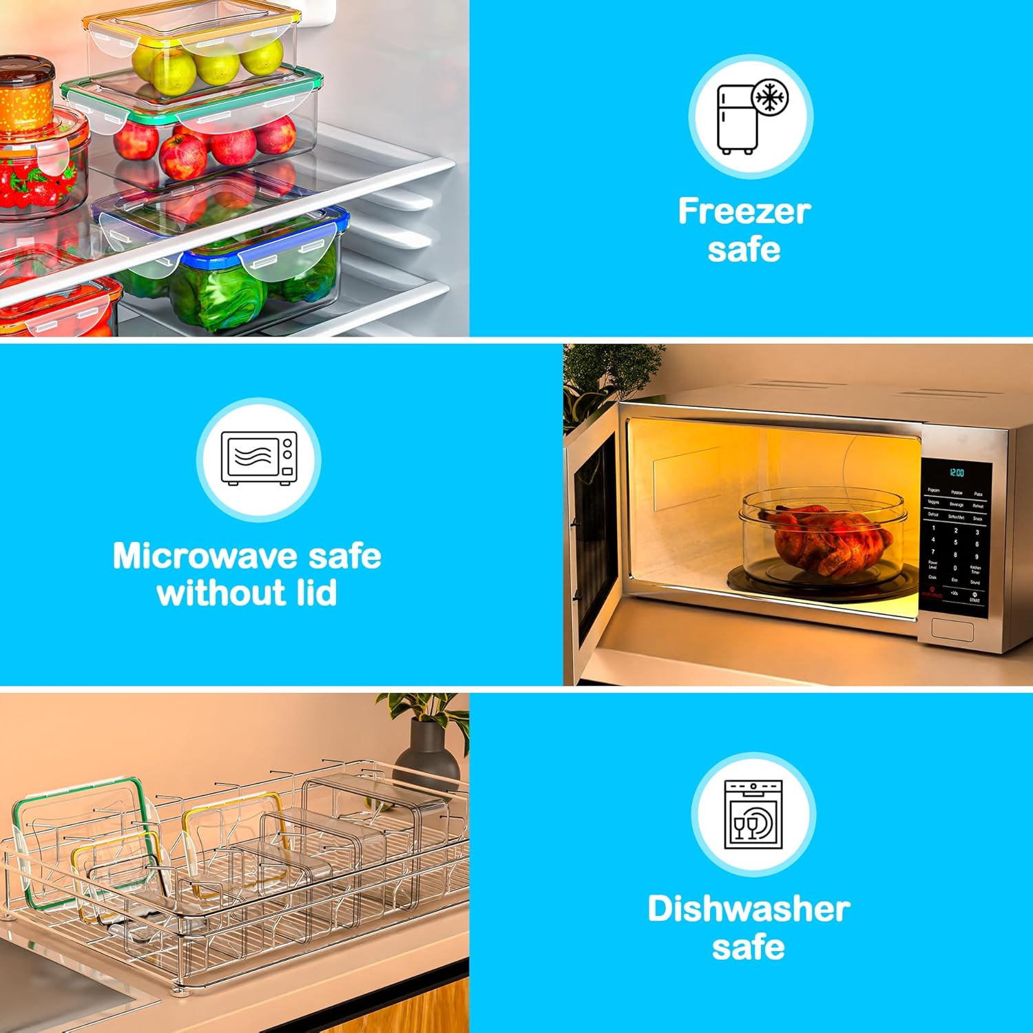 LEAKPROOF AND OTHER BENEFITS: Our air tight food savers with 4 sides snap lock lids are microwave friendly (without lid), freezer and dishwasher safe, also good for carrying and storing liquids as these are 100 percent leak proof . Now store everything without the fear of leakage