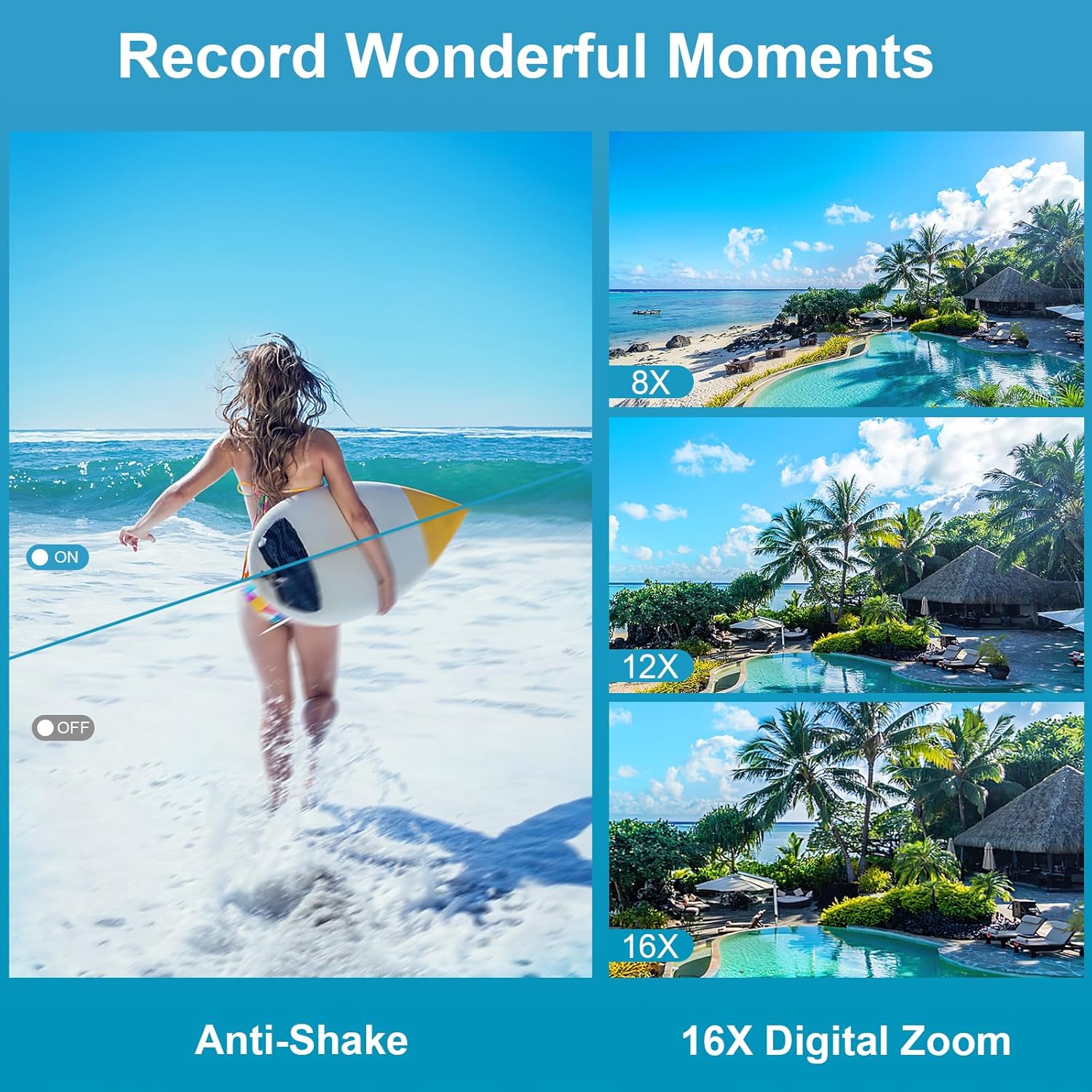 - 【4K UHD Waterproof Camera】 With a max 4K video resolution and 48MP photo resolution, this waterproof camera captures every moment with crisp detail and unparalleled clarity. Perfect for underwater snorkeling and cruising.