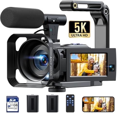 5K Camcorder Video Camera, 56MP Dual Lens WiFi IR Night Vision YouTube Vlogging Camera,16X Digital Zoom Touch Screen Cam Corder, Camcorder 5K with 64GB SD Card, 2 Batteries, Tripod, Remote ControlPL17-B0F13PMQZV