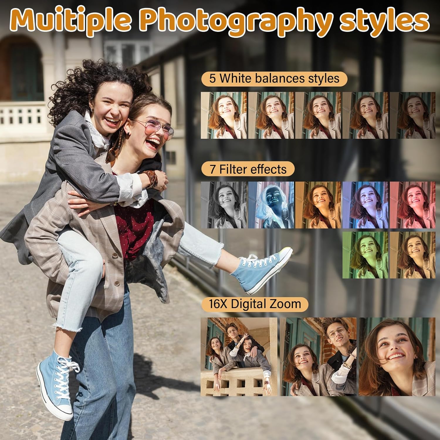 • 【18X Digital Zoom & Autofocus Vlog Camera】The vlogging camera is equipped with an 18X digital zoom, making it ideal for any scene that requires zooming in. The compact camera also includes an autofocus function, ensuring precise focus even when subjects are moving quickly or when shooting in low-light conditions.