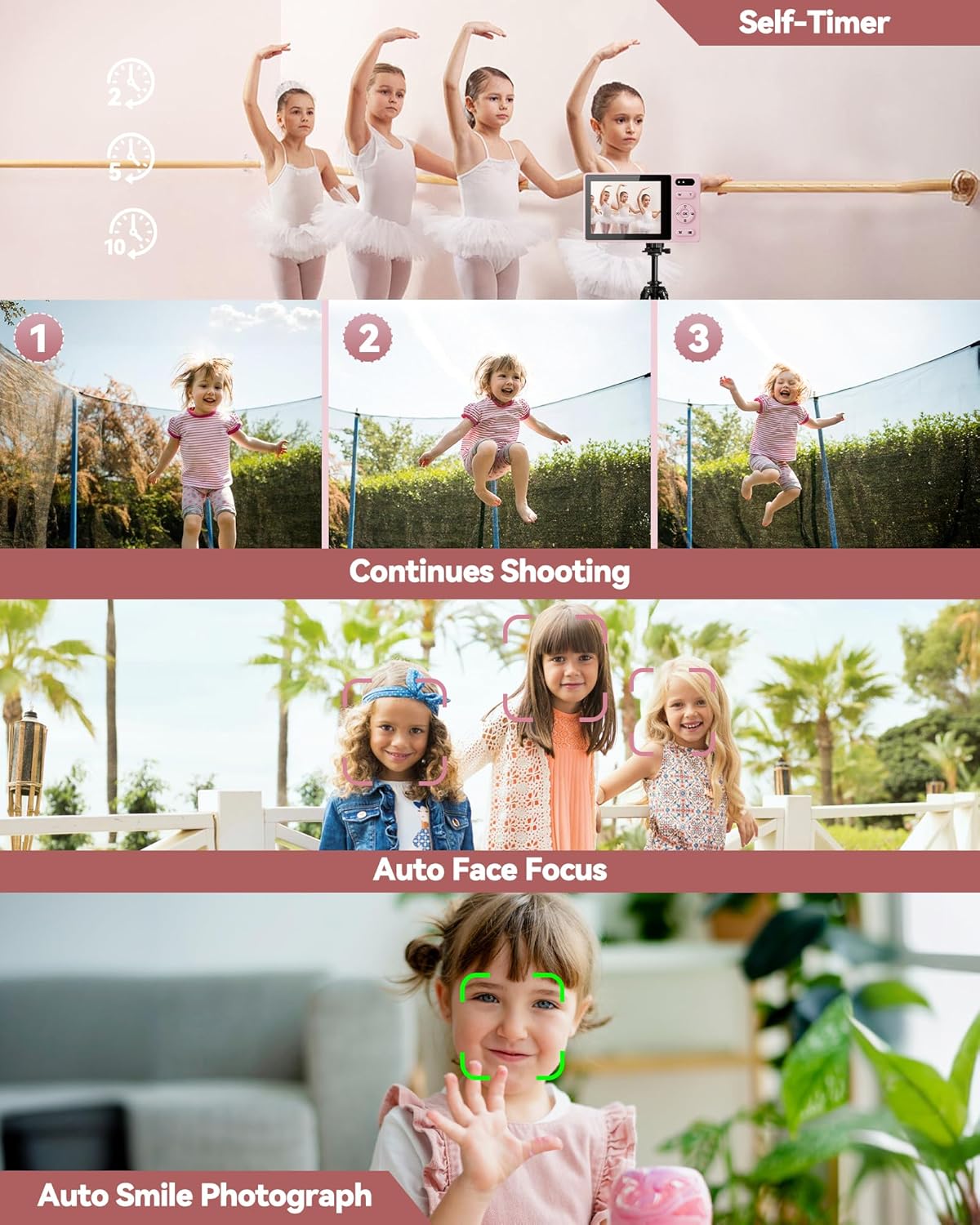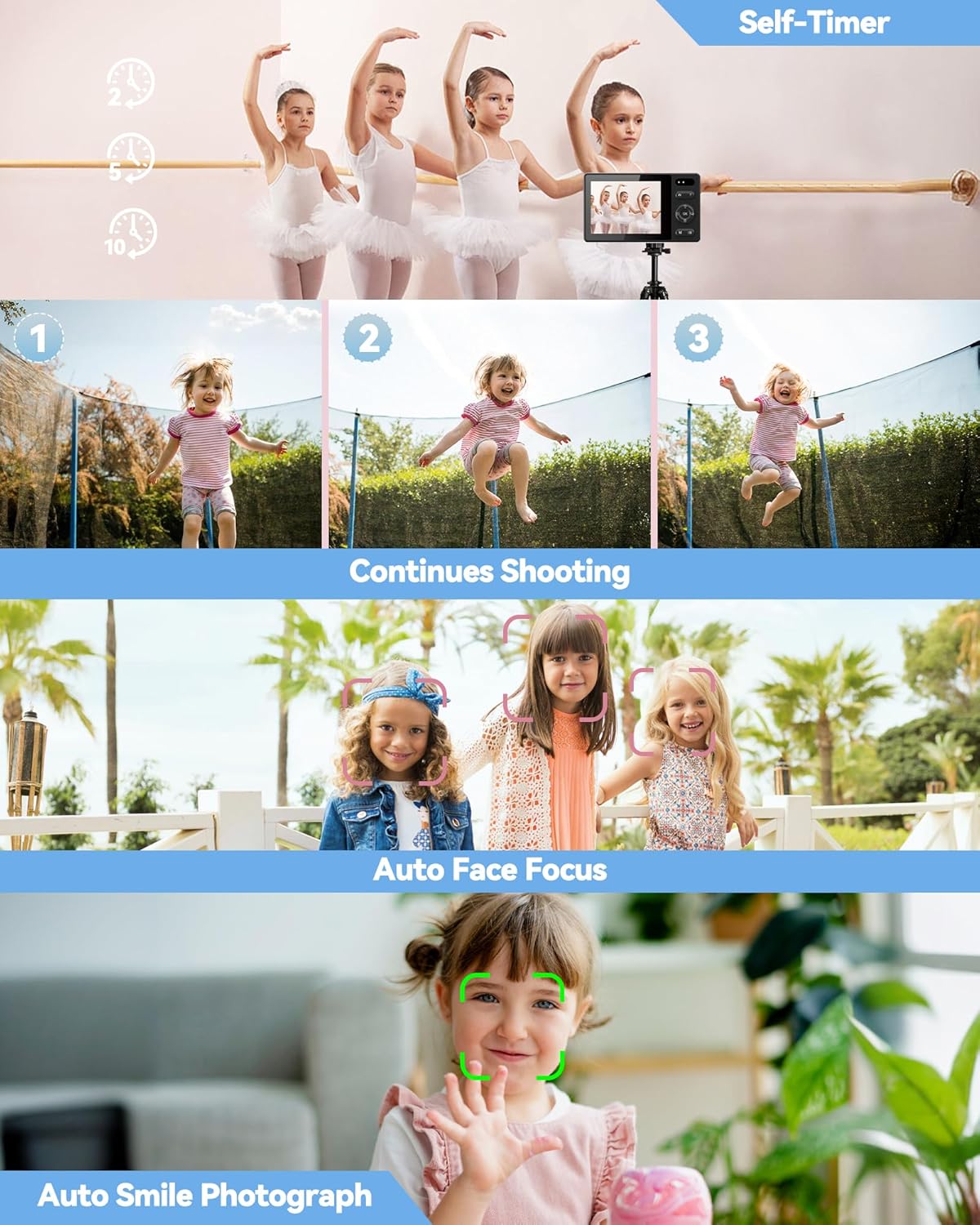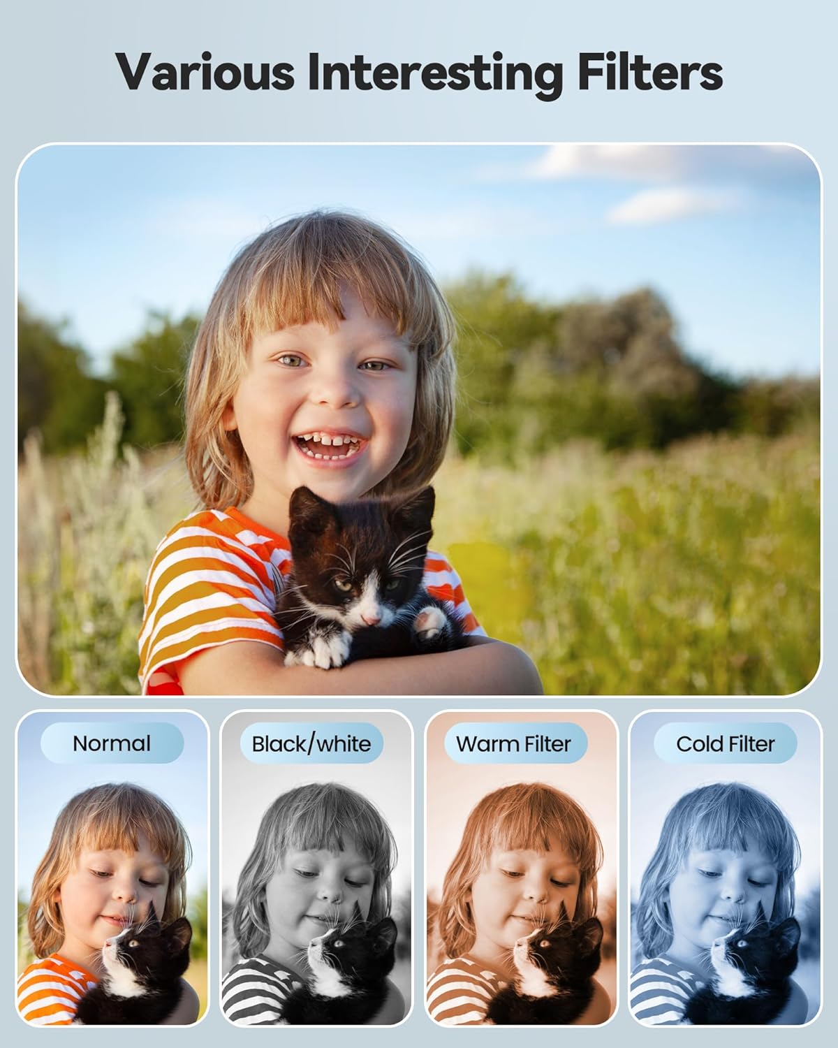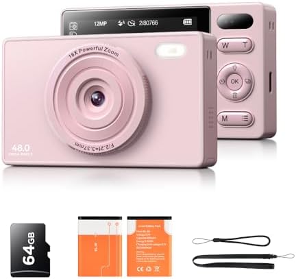 - 【48MP Photos & 1080P Video】Refuse blurry pictures! Preserve the important moments! 2024 latest digital camera features a 2.4” IPS color screen that provides a clear view and quickly captures life's best moments. With a built-in microphone and speaker, kids can also shoot videos to record their adventures and share their creations with family and friends. Simple operation improves the shooting experience for children and beginners and increases their interest in photography.