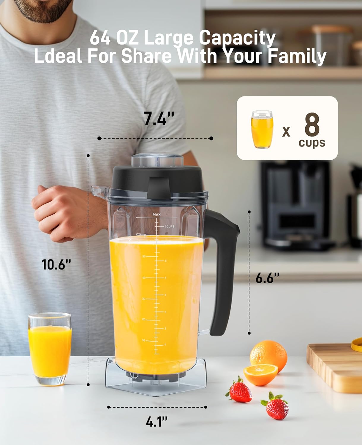 - Product Features: Every container is clearly marked with ounce and cup measurements, soft-grip handle, which is intuitive and easy hold when use. The large capacity of 64oz/8 cups can meet the needs of large family