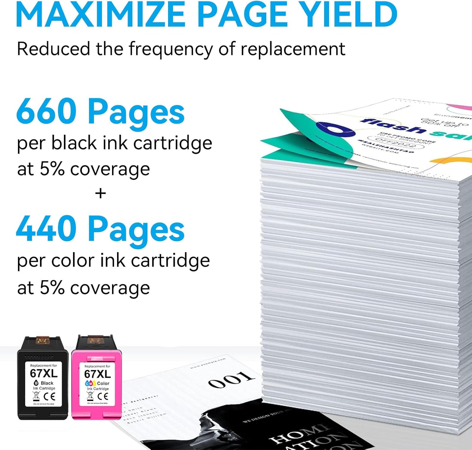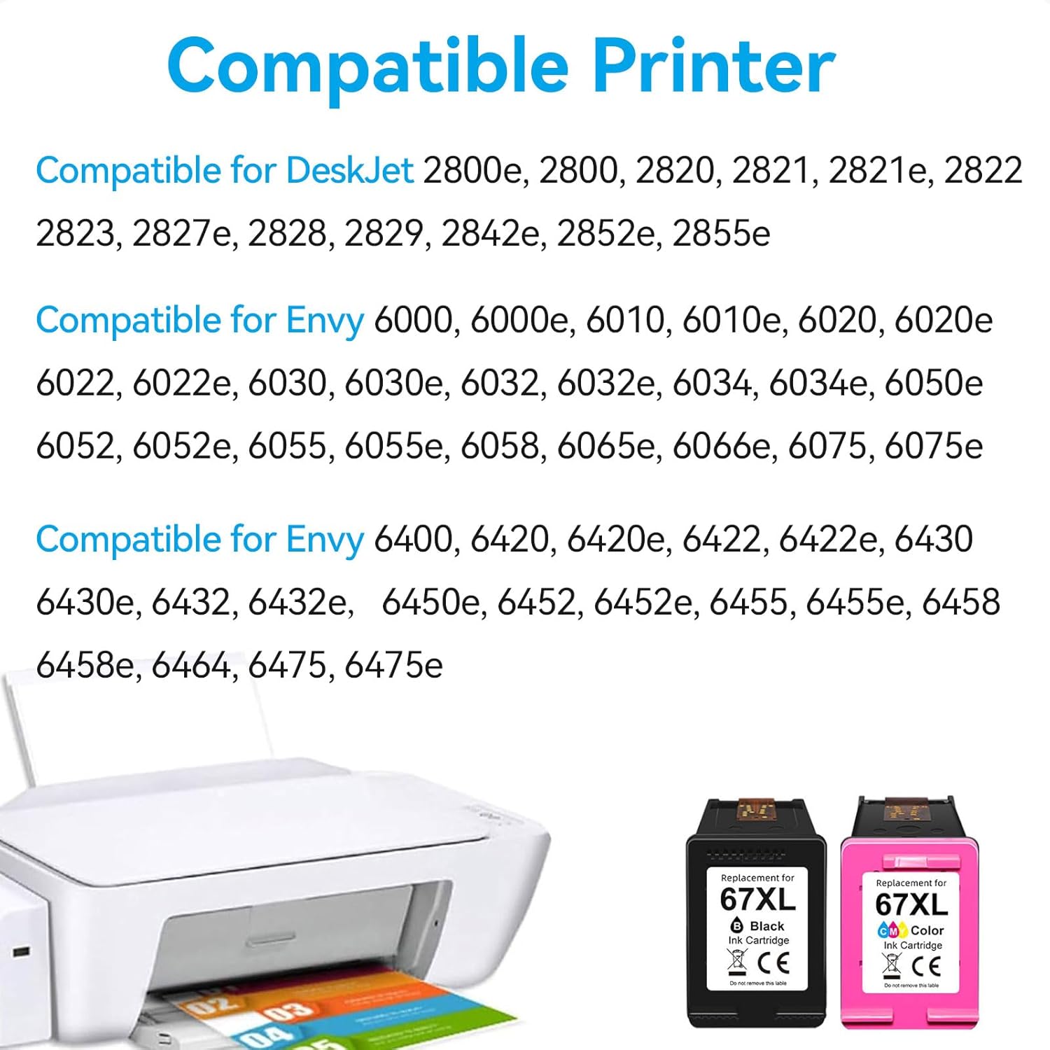 67XL Ink Cartridges Compatible for HP 67 Ink Cartridges Combo Pack Black Color Fit for Deskjet 2855e 4255e 2700 2755e 2734e 2842e 4255e 2723e 4155e 2742e 4100 Envy 6455e 6055e 6000 Printer