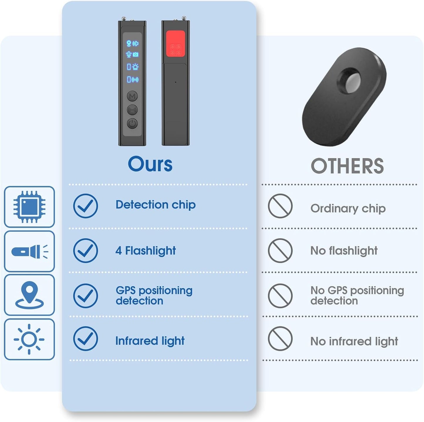 Protect your privacy anytime, anywhere with the 6monk Hidden Camera Detector. This compact, portable device is designed to detect hidden cameras, GPS trackers, and wireless listening devices in your environment. Featuring advanced RF scanning technology and a powerful LED light, it helps you locate suspicious devices in bathrooms, hotel rooms, rentals, dressing rooms, and other private spaces.