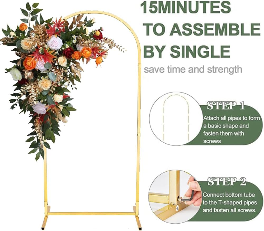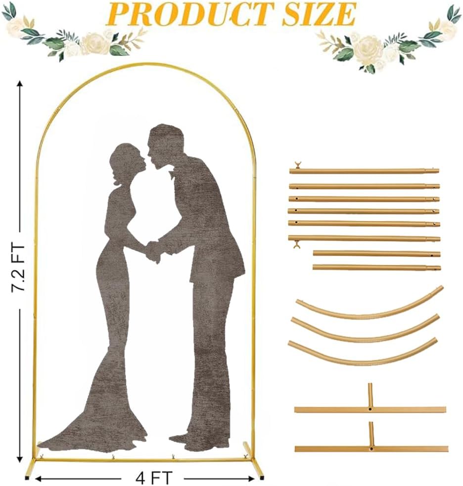 7.2 Ft Metal Wedding Arch Stand Gold Adjustable Backdrop with Base for Ceremony Birthday Bridal Baby Shower Outdoor Indoor Graduation Party Balloon Decoration Arched Square Frame (Gold, 7.2FT)