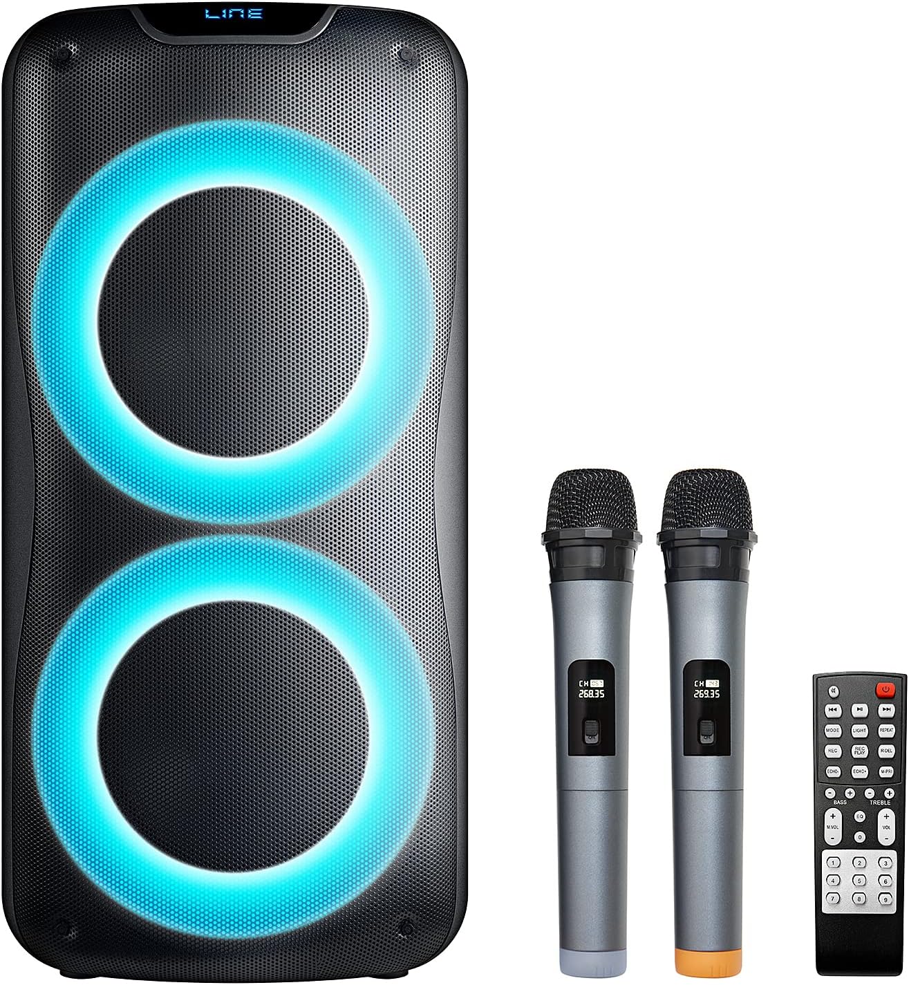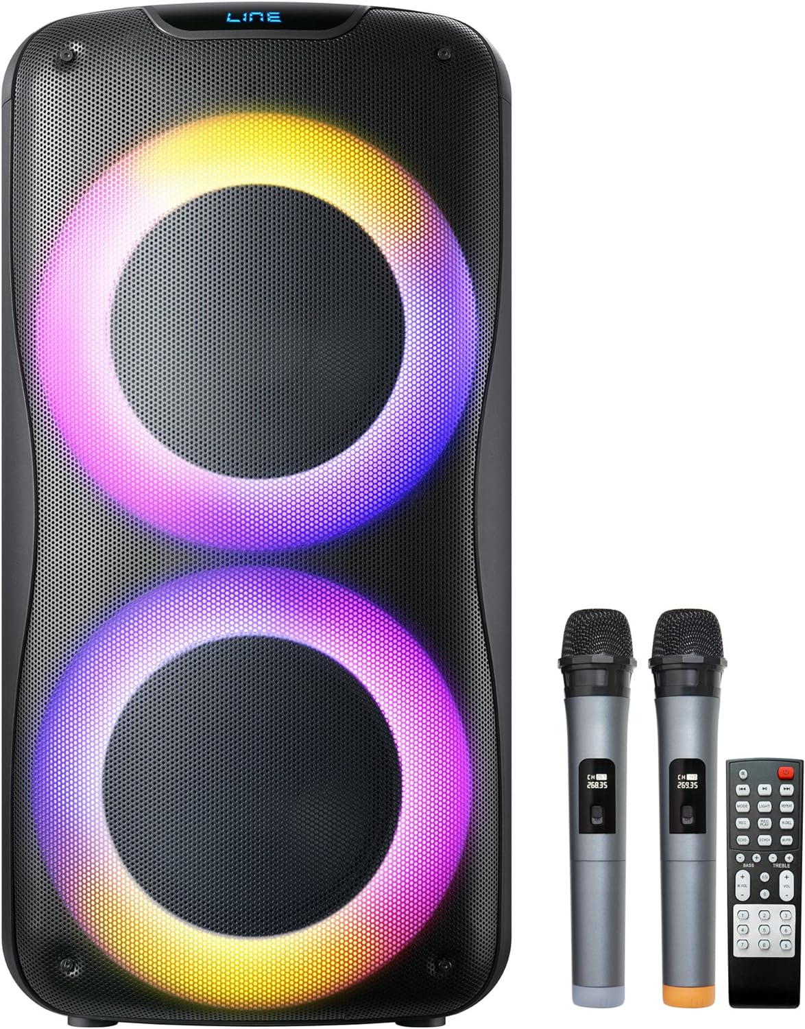 - Package Includes – Karaoke machine with built-in rechargeable battery, 2 wireless microphones, 1 remote control, and 1 charging cable. (Remote control and microphones require batteries, which are not included)