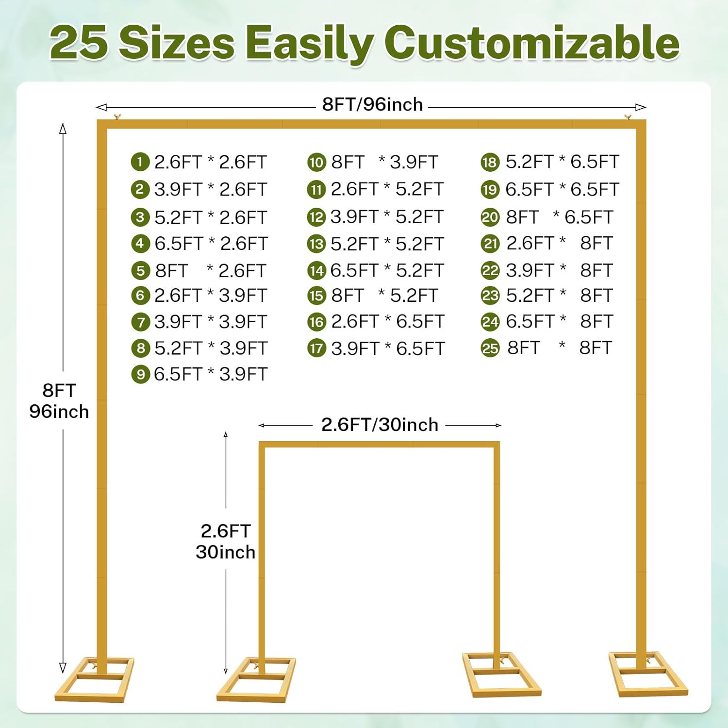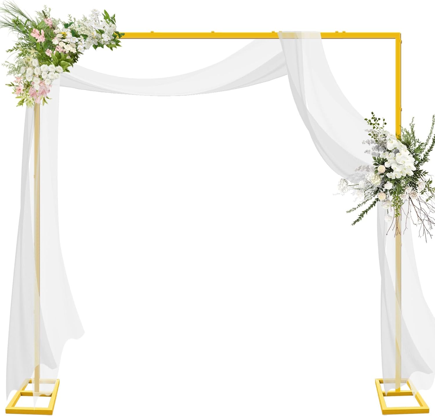 8FT x 8FT Heavy Duty Adjustable Arch Backdrop Stand, Gold Square Back Drop Metal Balloon Arch Stand Kit Frame for Party Wedding Birthday Photobooth Decorations