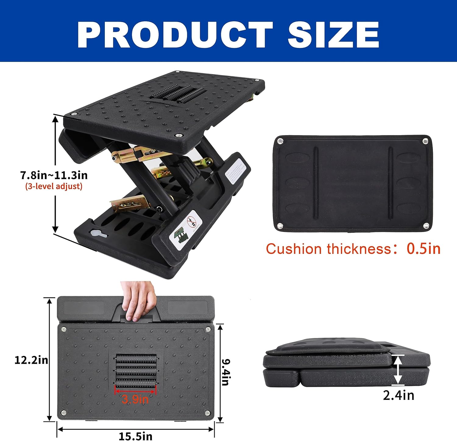 - Adjustable ergonomic foot rest for under desk comfort
