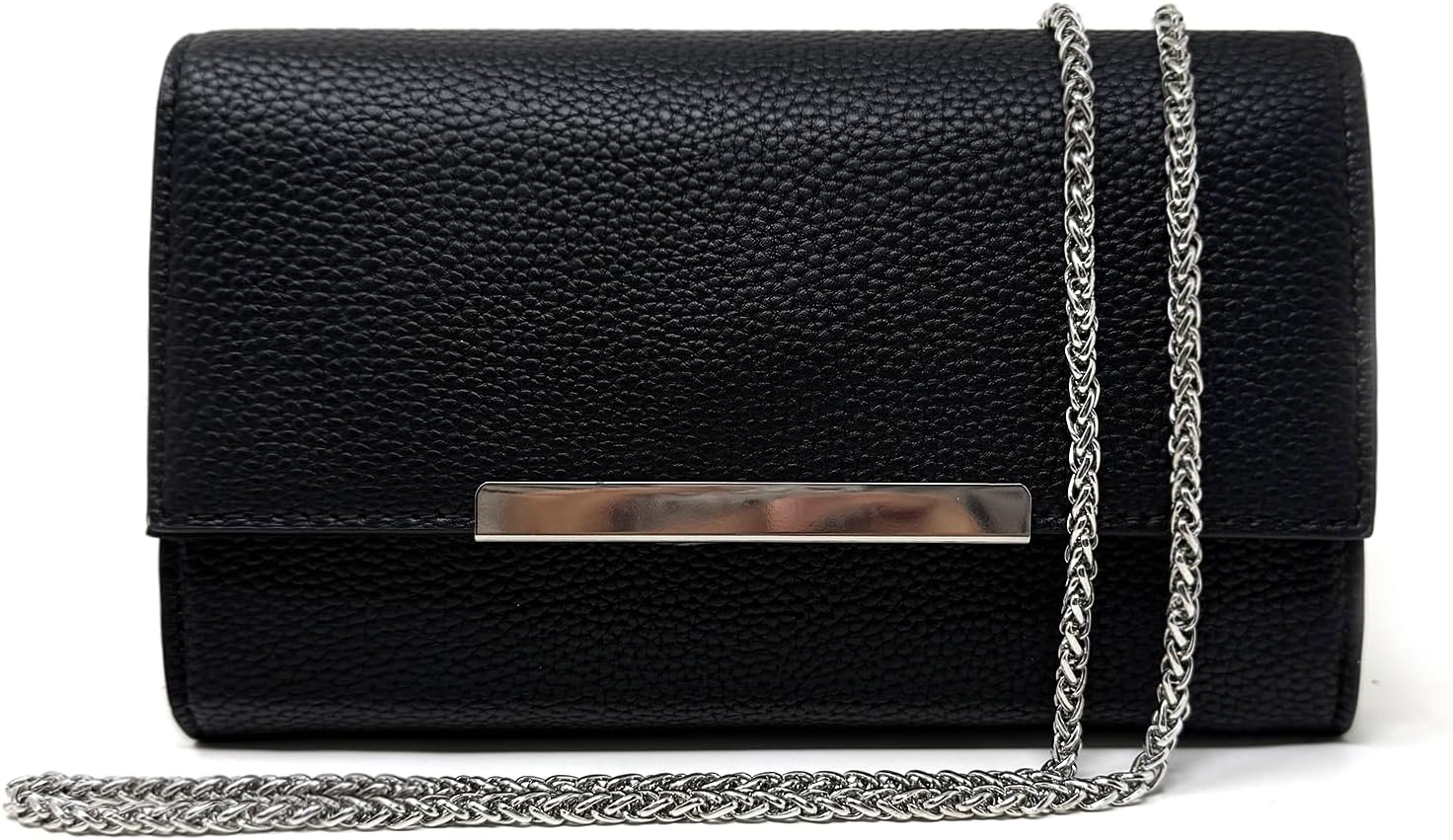 - Black Clutch Purses for Women: 8.0" L x 5.0" H x 1.5" D, 0.6LB. Detachable chain strap with 23” drop.