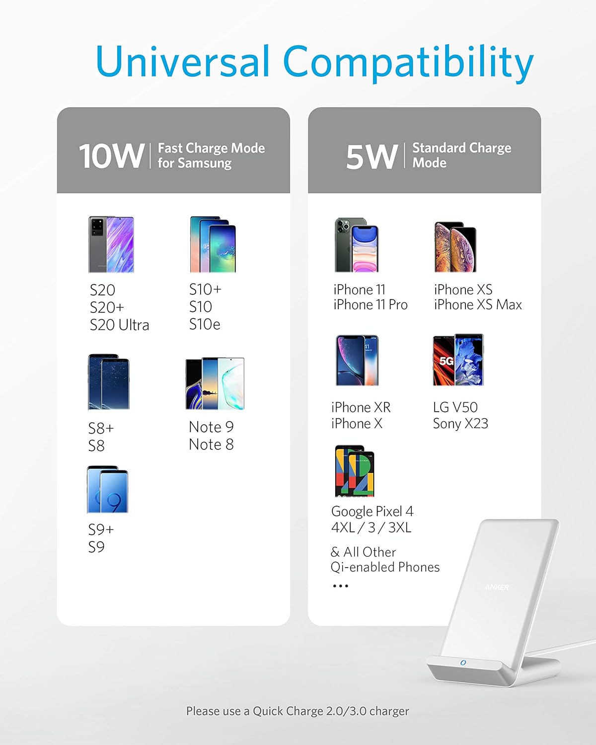 • All-Inclusive Package: Your purchase comes with 2× 313 Wireless Charger (Stand) / PowerWave Stand, 2× 4 ft Micro USB Cable, a welcome guide, an 18-month worry-free warranty, and our dedicated customer service. Rely on Anker for an unparalleled charging experience.