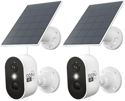 AOSU 2K Security Camera Wireless Outdoor, Solar Powered Security Camera with Spotlight, Siren, Motion Detection, Full Color Night Vision, 2-Way Audio, IP66, Compatible with Alexa, 2.4GHz WiFi (2PACK)