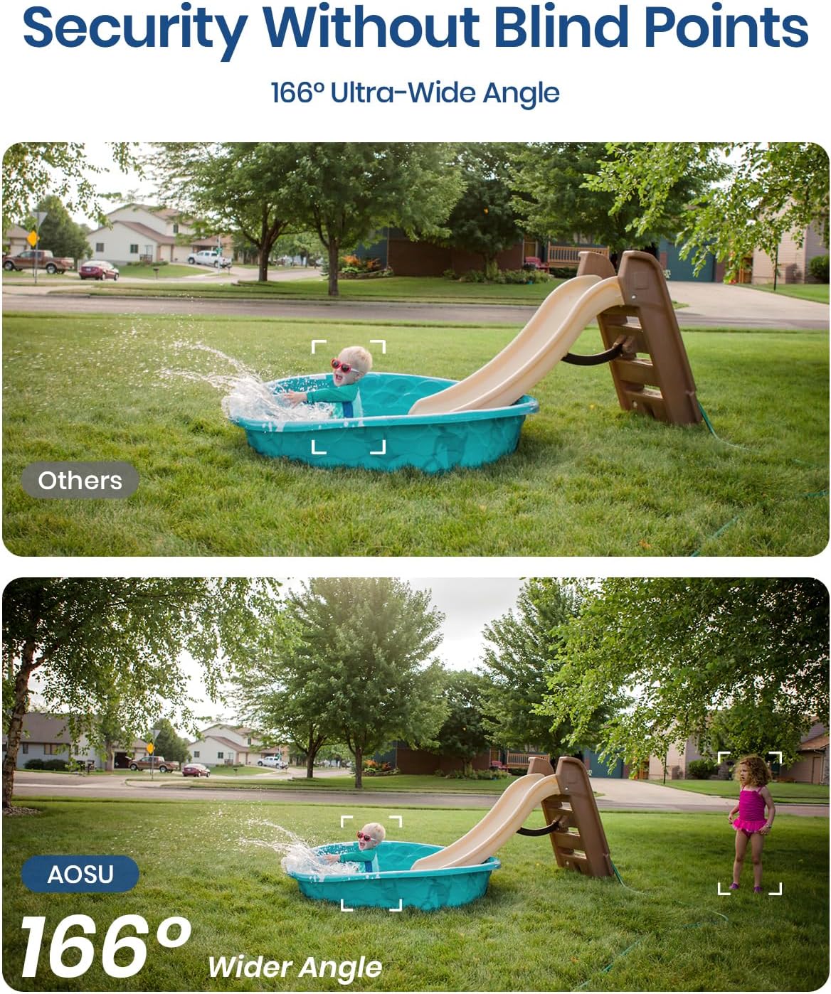 AOSU Security Cameras Outdoor Wireless, 4-Cam-Kit, 166° Ultra-Wide-Angle, Battery Powered, No Subscription, Home Security Cameras System with 2K Color Night Vision, Spotlight, Easy Setup, Motion Alert