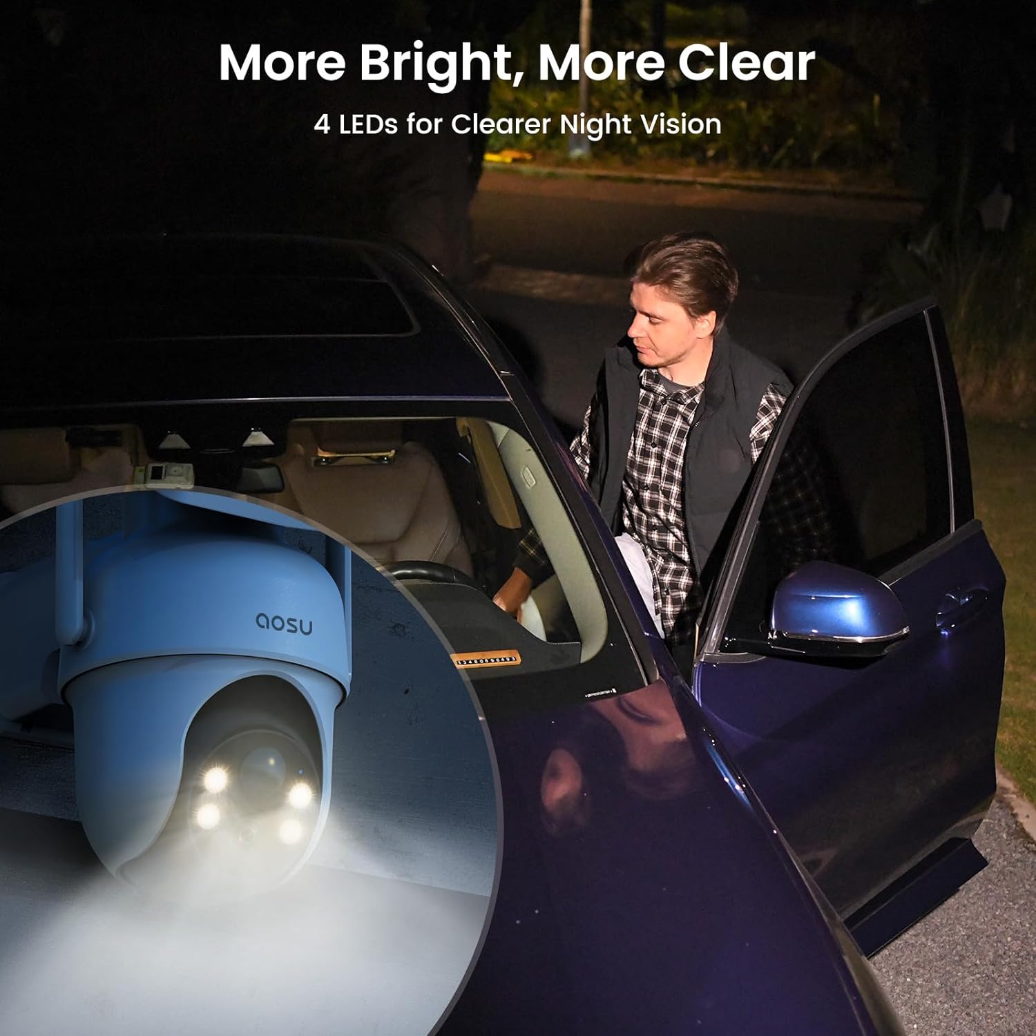 AOSU Security Cameras Outdoor Wireless, 4 Cam-Kit, No Subscription, Solar-Powered, Home Security Cameras System with 360° Pan & Tilt, Auto Tracking, 2K Color Night Vision, Easy Setup, 5G & 2.4G WiFi