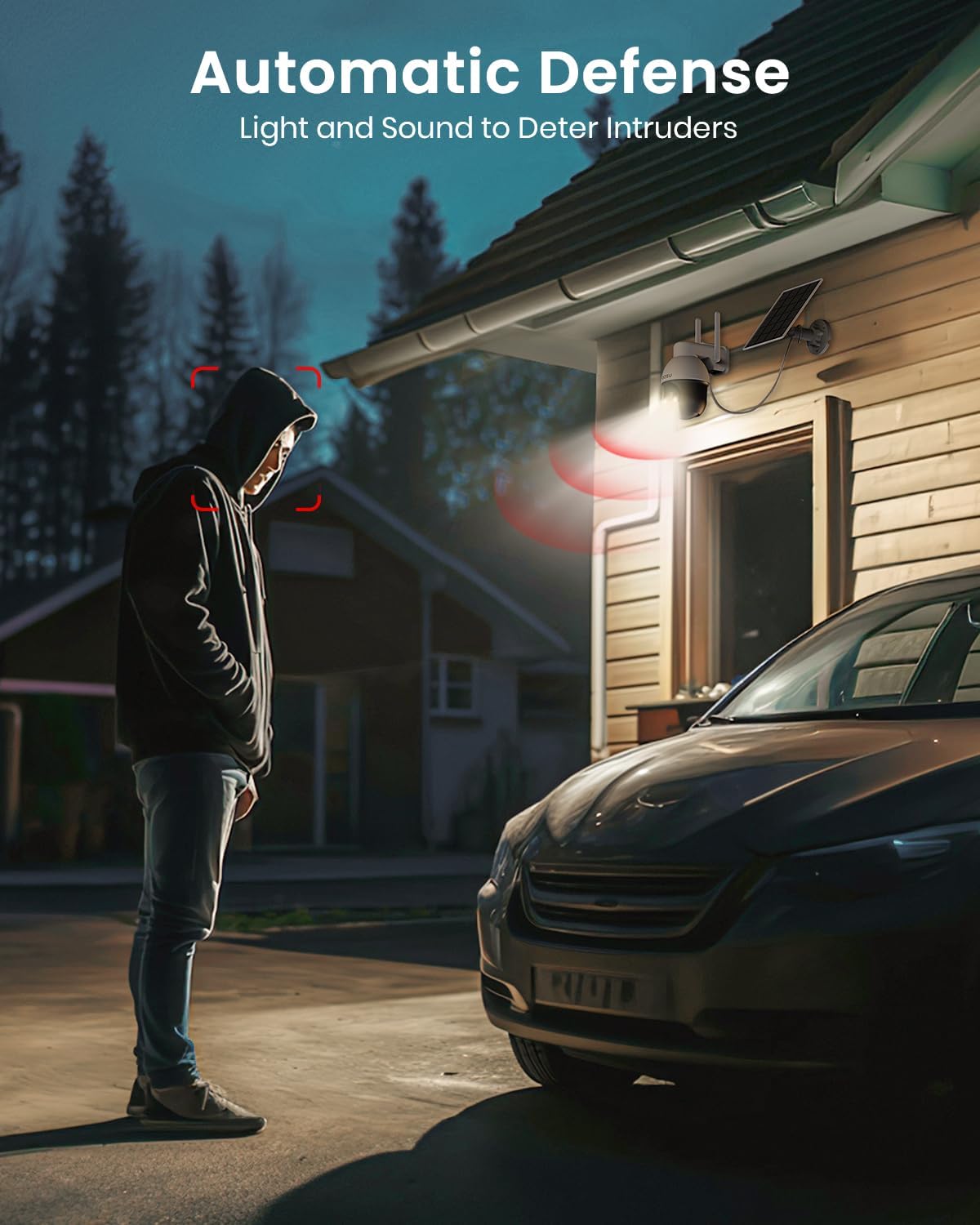 • Automatic Human Tracking - When human motion is detected, the solar security cameras wireless outdoor automatically focuses on and tracks the moving people to record a more detailed event. Enjoy peace of mind knowing that your property is under great surveillance.