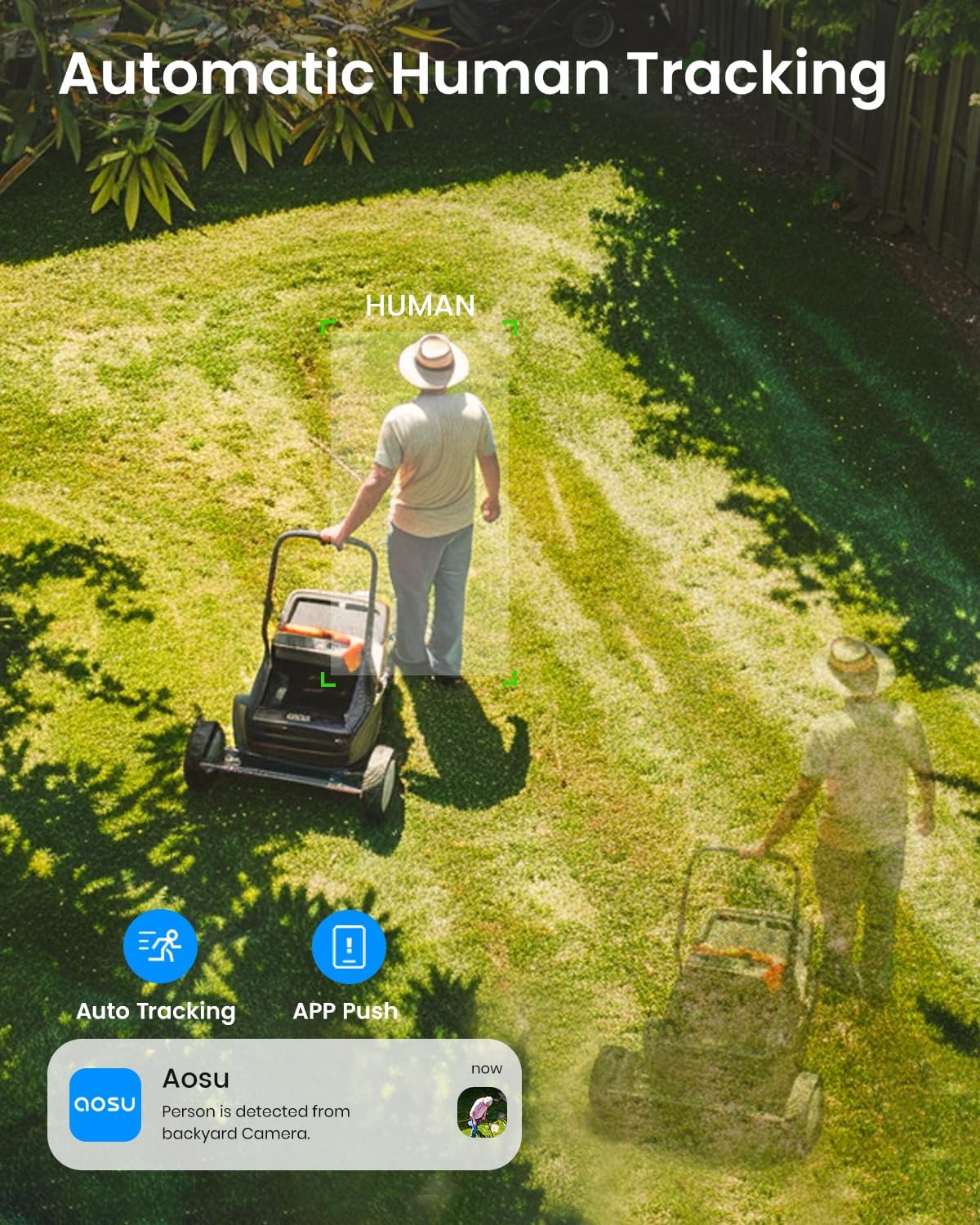 AOSU Solar Security Camera Wireless Outdoor with Panoramic PTZ, Human Auto Tracking, 2K Night Vision, Light and Sound Alarm, 2-Way Talk, Compatible with Alexa/Google Assistant for Home Surveillance