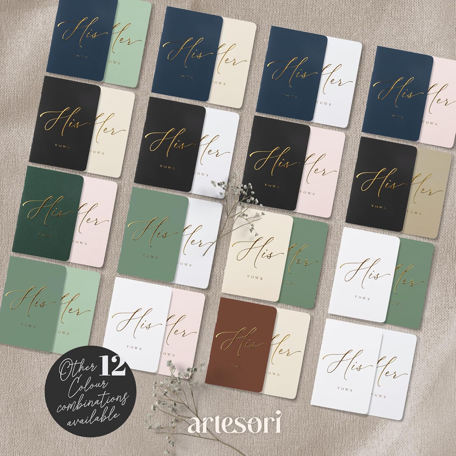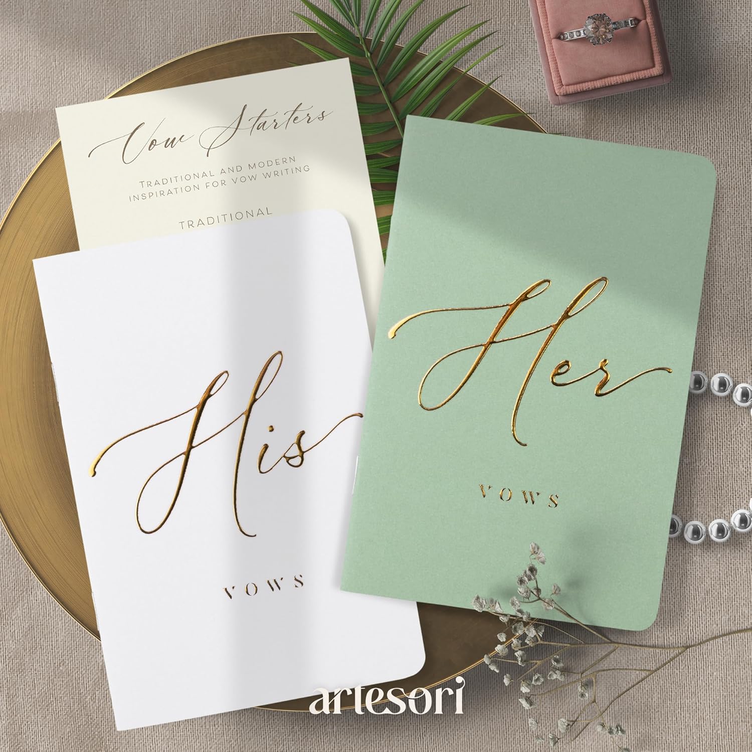 ARTESORI Wedding Vow Book for Her & Him, Soft Touch, Gold Engraving, 28 Lined Pages, Wedding Vow Books His and Hers, Wedding Essentials, Wedding Registry Gifts, His and Hers Gifts [Mint & White]