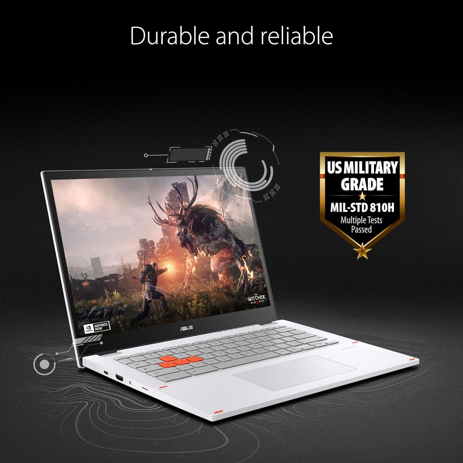 ASUS Chromebook Vibe CX34 Flip pairs incredibly realistic visuals and exceptional performance to deliver unmatched cloud gaming experiences and nonstop productivity on the go. This remarkable device features an immersive 16:10, 144 Hz WUXGA display, an anti-ghosting keyboard with four-zone RGB lighting, and ultrafast WiFi 6E technology. ASUS Chromebook Vibe CX34 Flip has a durable chassis and a distinctive look that includes exclusive orange-accented WASD keycaps that add flair. Get the most out of the new cloud gaming and work-from-home era with ASUS Chromebook Vibe CX34 Flip ― use it to access over 1000 games through cloud gaming platforms like NVIDIA GeForce NOW and Xbox Cloud Gaming.