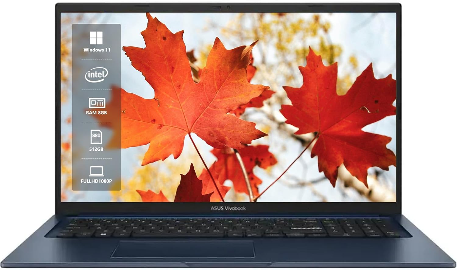 ASUS Vivobook 17 Laptop, 17.3" FHD IPS Display, Business Laptop, Intel Core i3-1215U, 8GB RAM, 512GB SSD, HDMI, Webcam, Wi-Fi, Windows 11 Home, Quiet Blue.