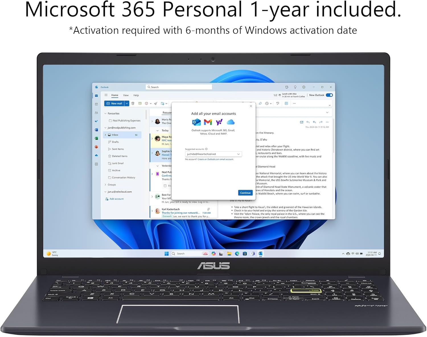 ASUS Vivobook Go 15 L510 Thin & Light Laptop, 15.6” HD Display, Intel® Pentium® Silver N6000, 4GB RAM, 128GB eMMC, Windows 11 Home in S Mode, Includes 1 Year Microsoft 365, L510KA-AS02-CA