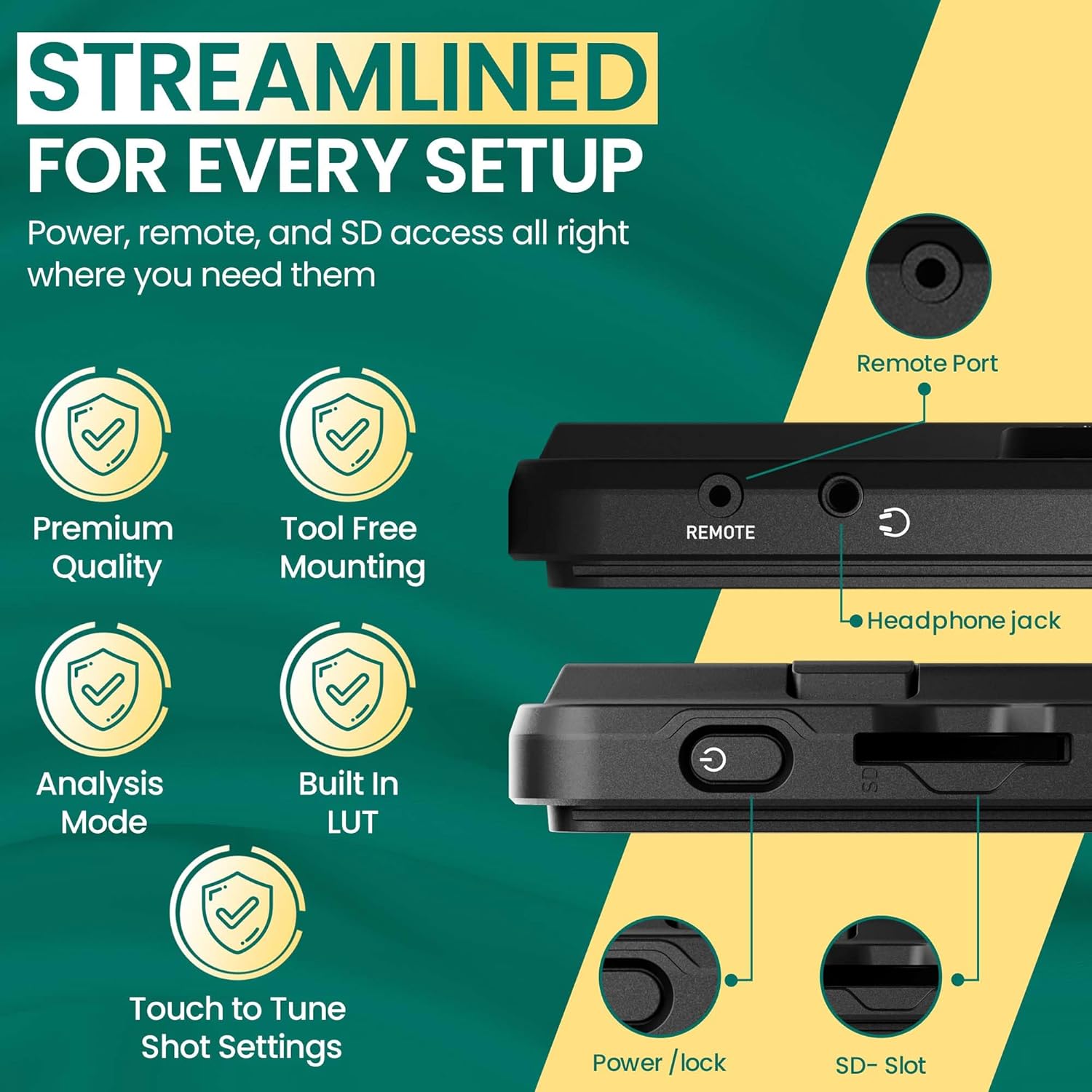 • Advanced Monitoring Tools Built-In: Enjoy professional tools like waveforms, focus peaking, false color, histogram, and zebra. These features ensure accurate exposure, focus, and framing, giving you full control over your video and photo shoots in real time.