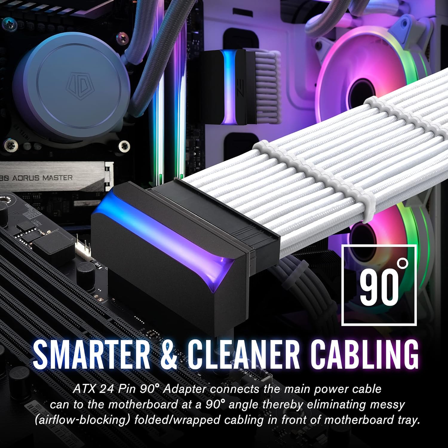 Perfect for showcase builds, tempered-glass cases, and tight PC layouts, this adapter not only improves airflow and cable routing but also adds a premium RGB accent to your system.