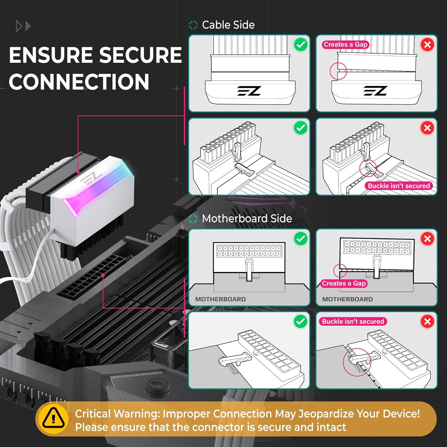 - Female-to-male ATX 24-pin plug-and-play installation