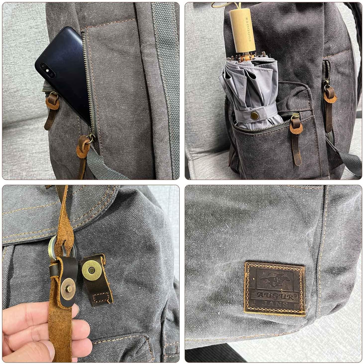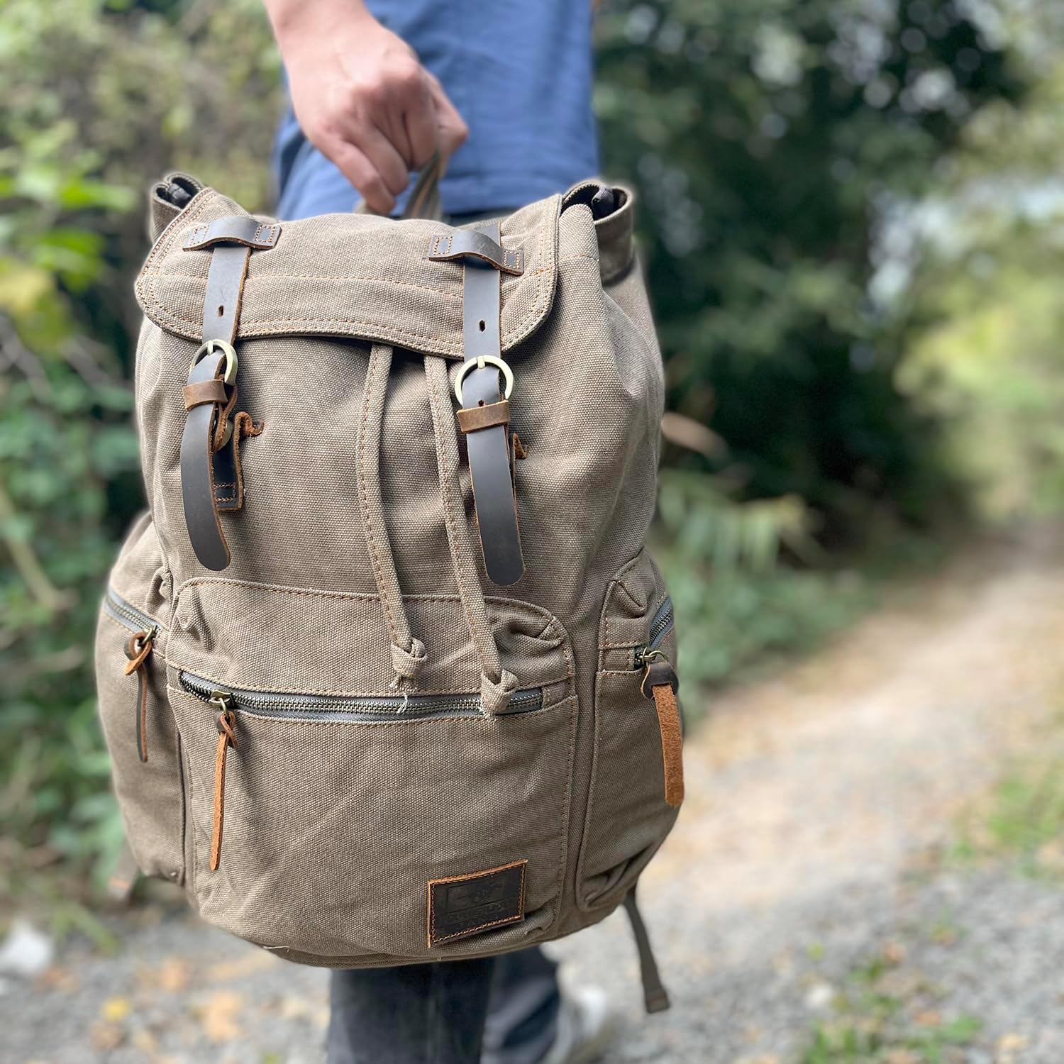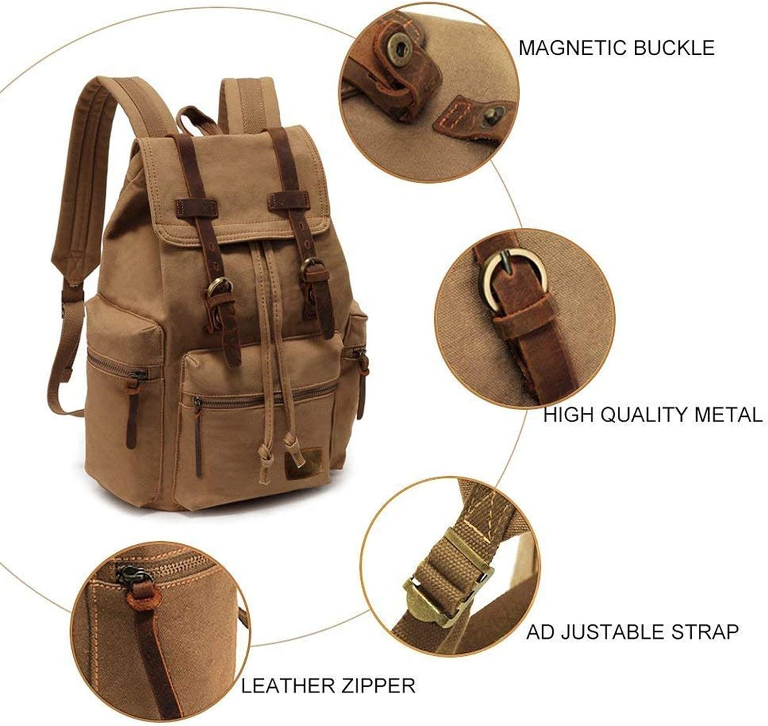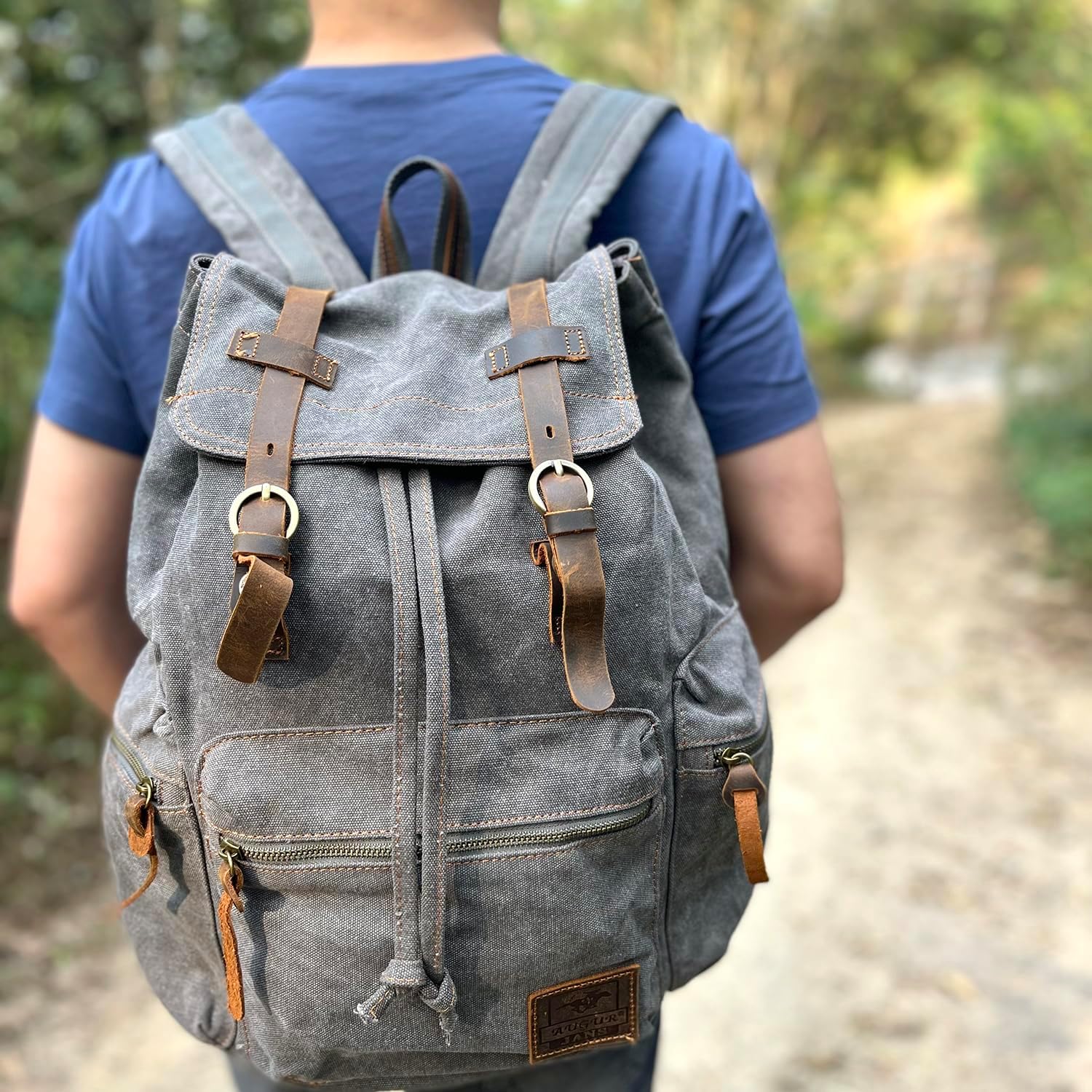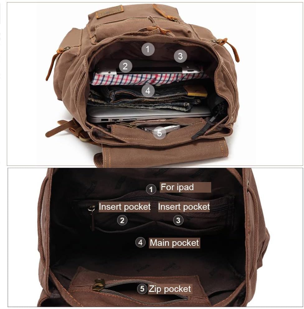 • ✔ DURABLE MATERIALS -- series vintage backpack is made of sturdy canvas with genuine cow leather trim. Waxed canvas backpack with adjustable shoulder straps for carrying comfortably.
