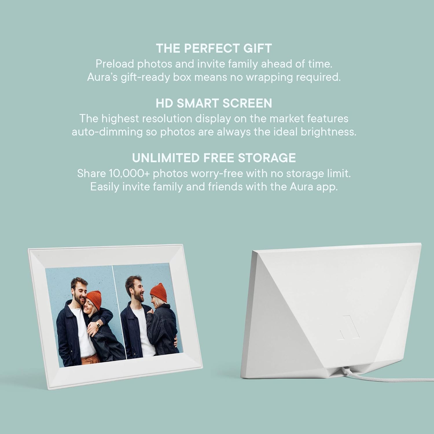 - Perfect for gifting—add unlimited photos and videos anytime with the free Aura app