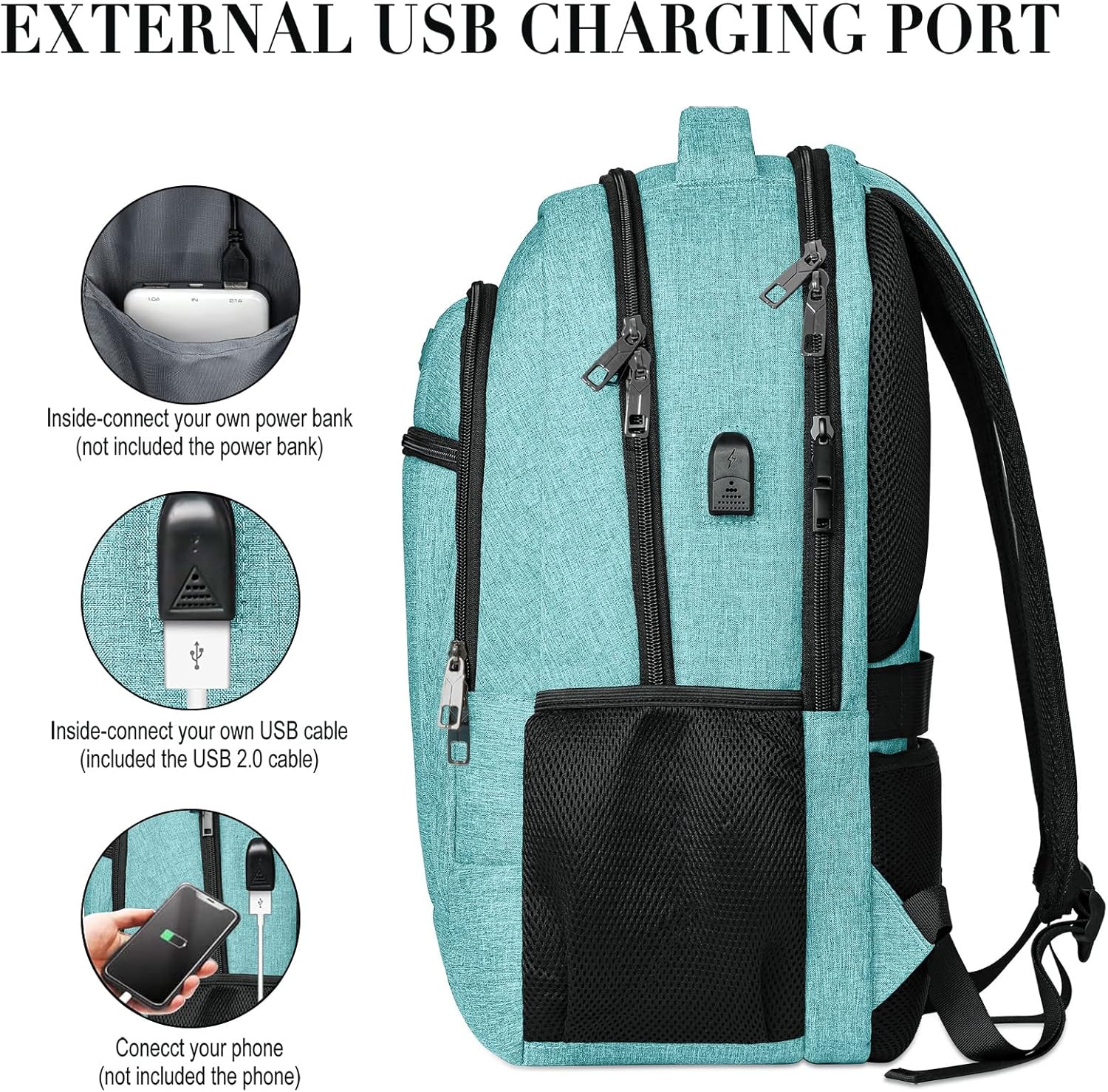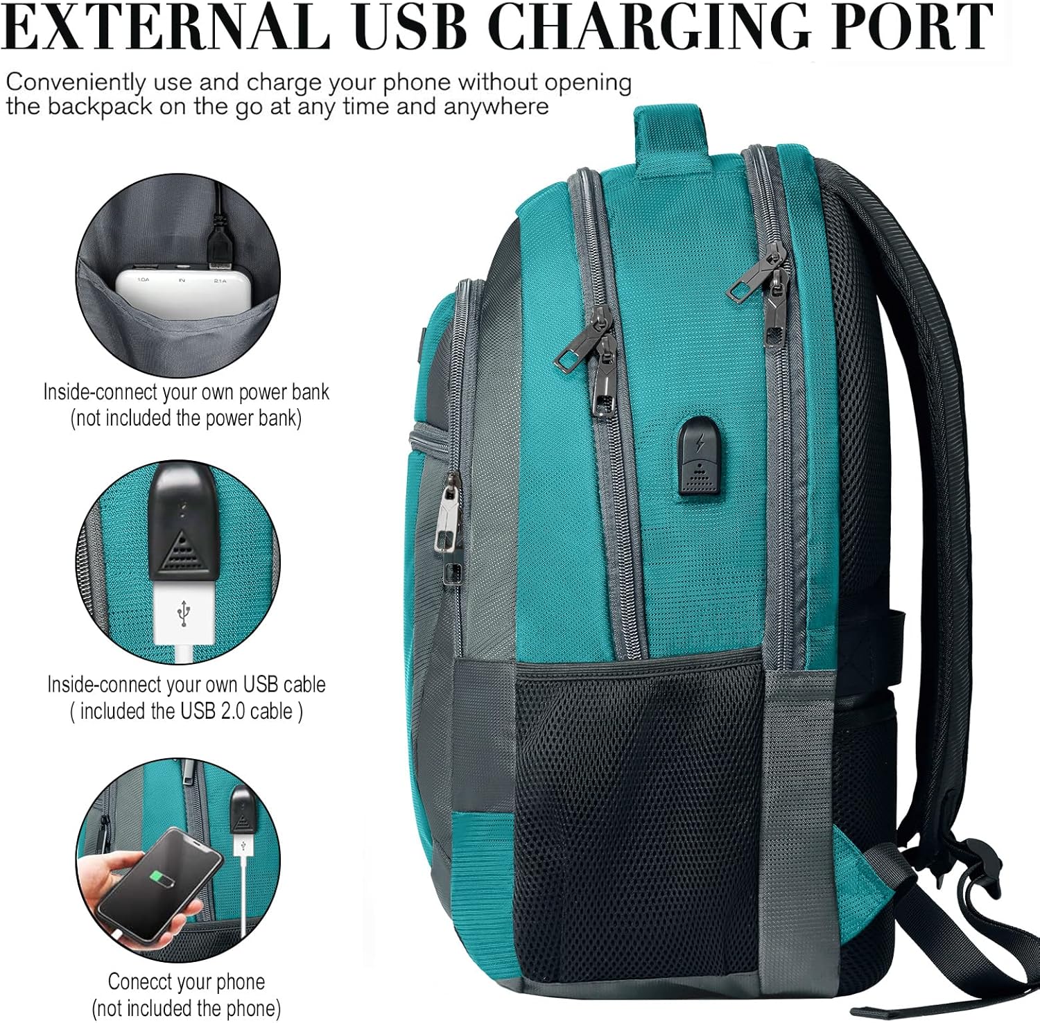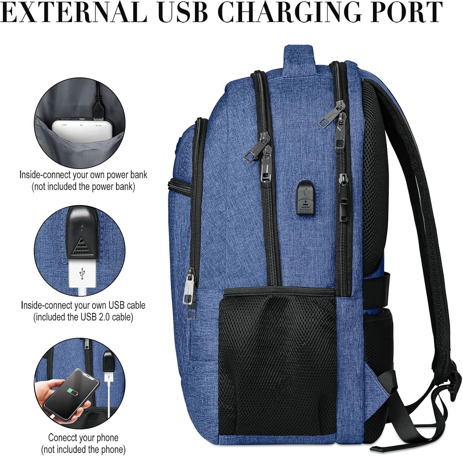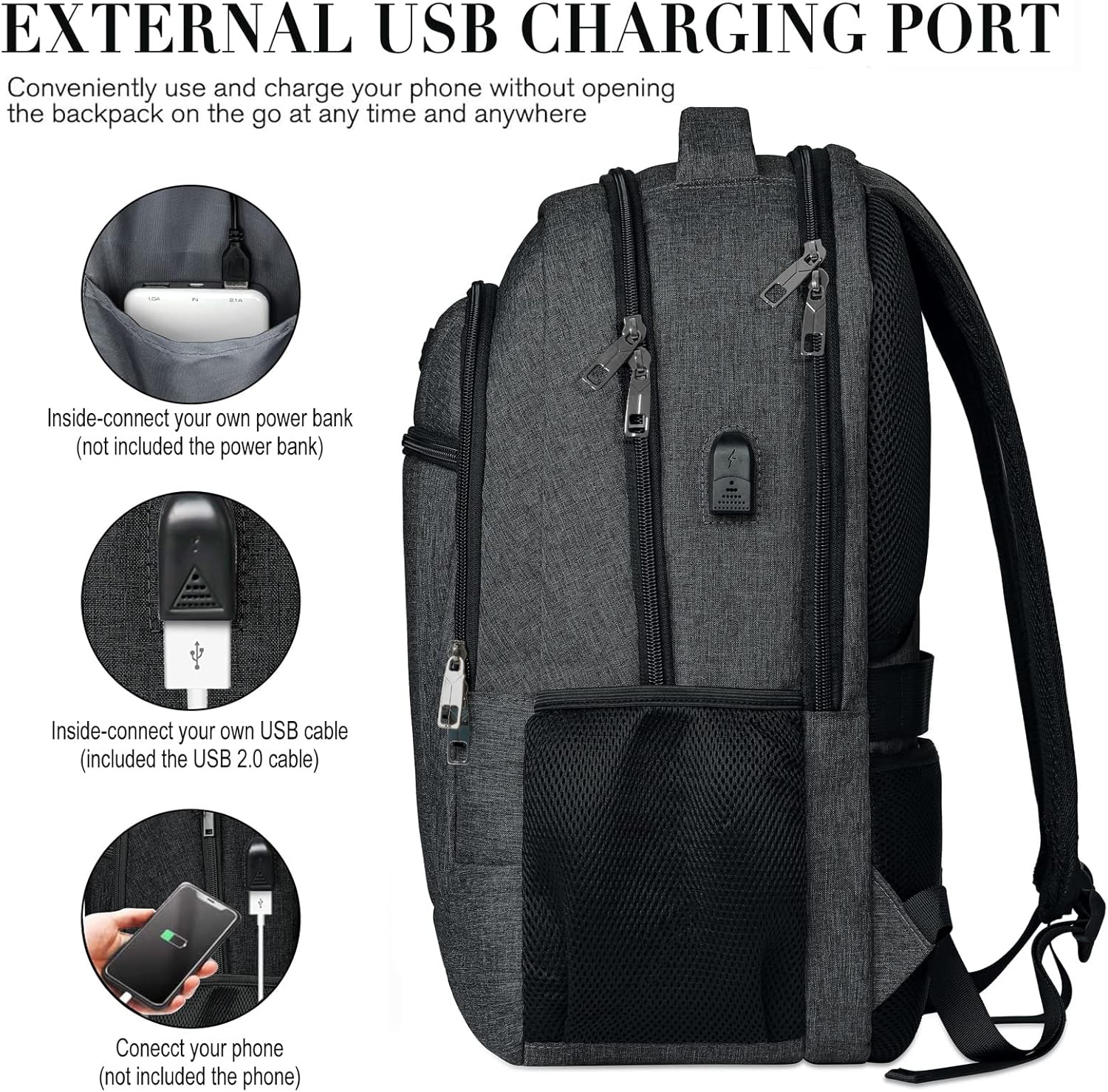 • ★USB PORT &ANTI THEFT DESIGN:With built in USB charger outside and built in charging cable inside,this USB backpack offers you a more convenient way to charge your phone while walking. A luggage strap allows backpack fit on luggage/suitcase, slide over the luggage upright handle tube for easier carrying. With a hidden anti theft pocket on the back protect your valuable items from thieves, please be assured that the use of