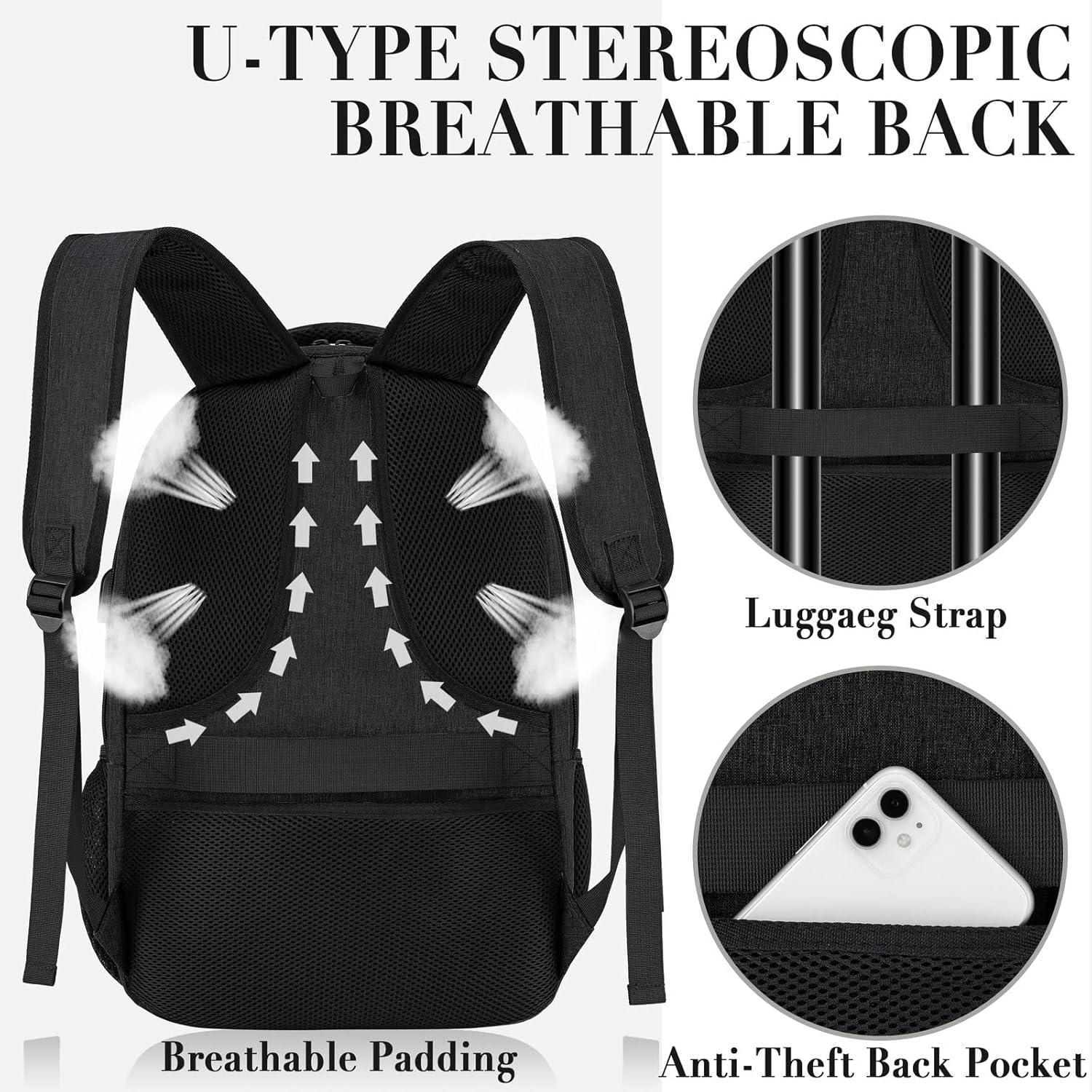 Backpack for Men and Women, School Backpacks for Teen Boys and Girls, Black Water Resistant Back Pack, Business Men Sturdy Computer Bag with USB Charging Port, GiftsPL17-B0BNQFG1P4