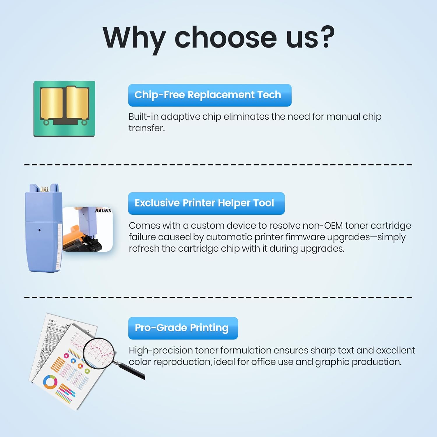 - Printer Helper: Only four steps are needed to complete the firmware upgrade! OEM toner cartridge often cannot work due to automatic printer firmware upgrades. This "Printer Helper" is designed to solve this problem.