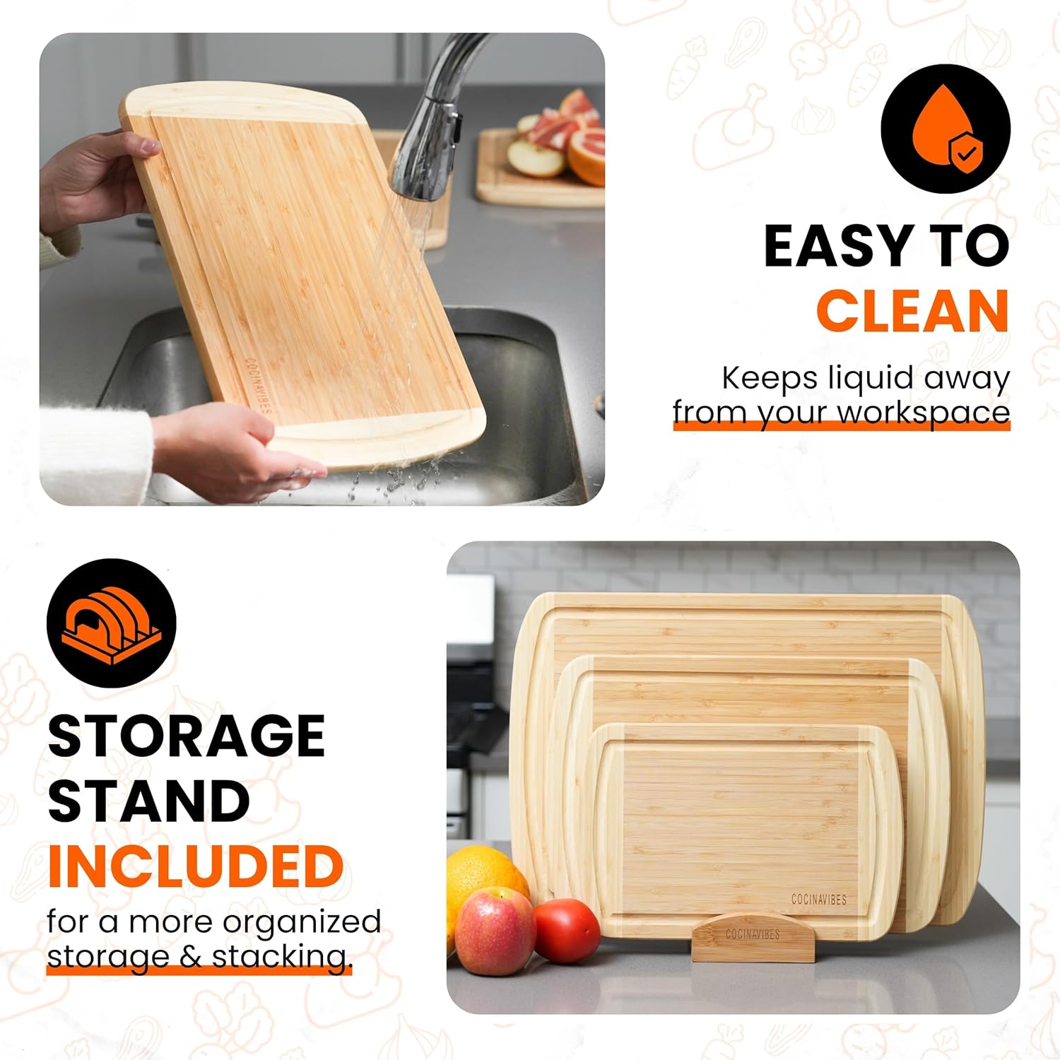 - Premium Bamboo Design for Every Kitchen Upgrade your kitchen with our solid bamboo cutting board – a must-have for kitchen accessories, wedding registry must haves, bamboo cutting boards for kitchen, kitchen decor and accessories, kitchen decor, kitchen and dining.