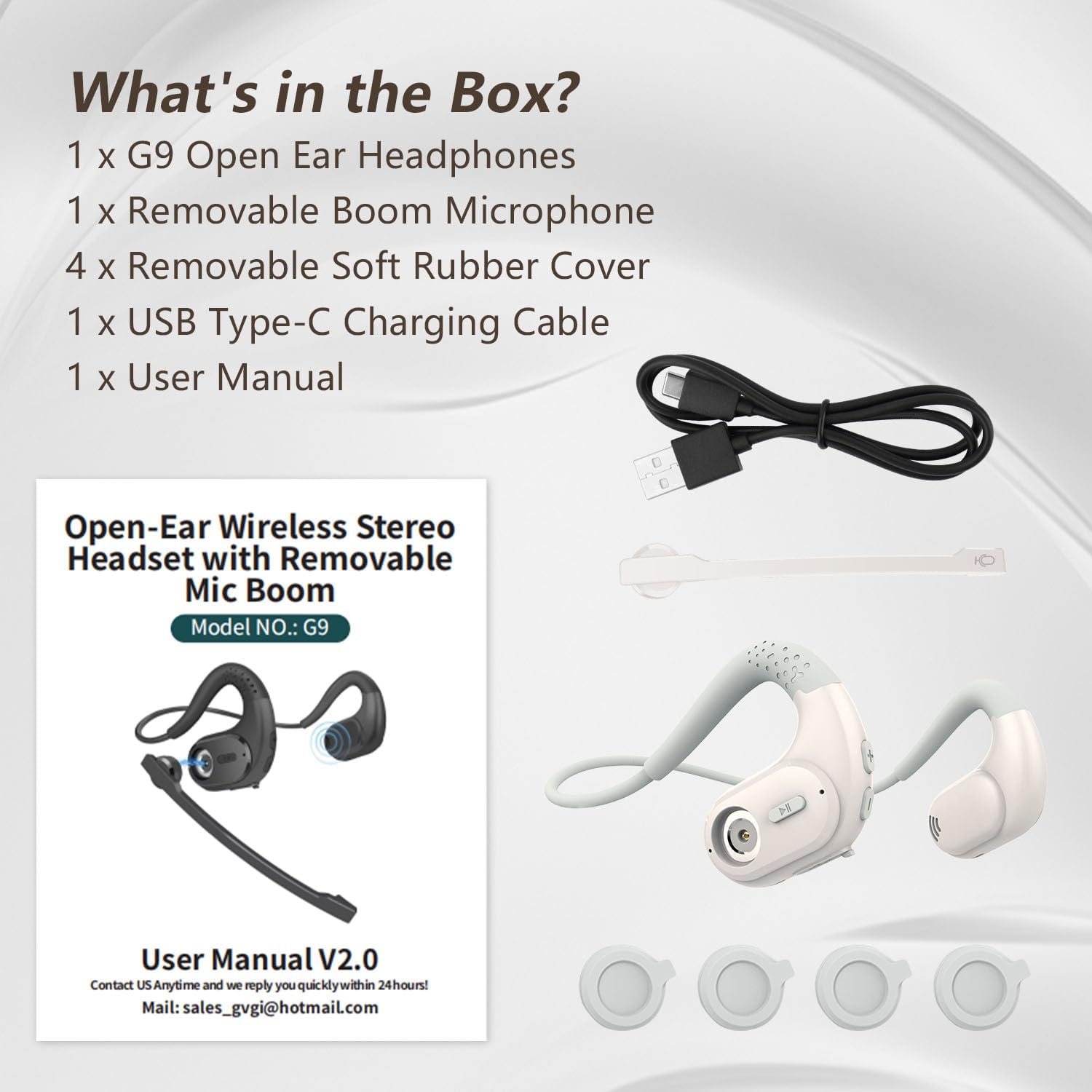 Specific Uses For Product Open-ear design for health and safety- the open-ear design that does not go into the ear protects your ear canal cleanliness and hearing without harming your eardrum; you can be aware of your surroundings to ensure your safety., The Open ear headphones is equipped with dual noise-cancelling microphones with DSP noise reduction technology to ensure clear calls and a great music experience., The wireless headphones is ergonomically designed. The ear hook is made of silicone, skin-friendly and comfortable, fits your ear, stays firmly in place, does not move around or bounce back, and can be worn for long periods of time without ear pain.