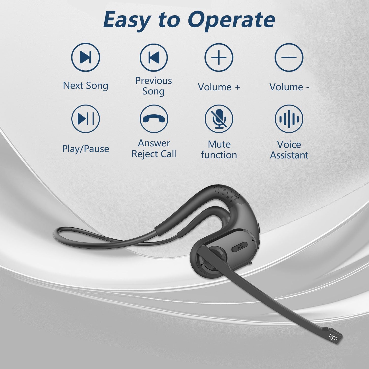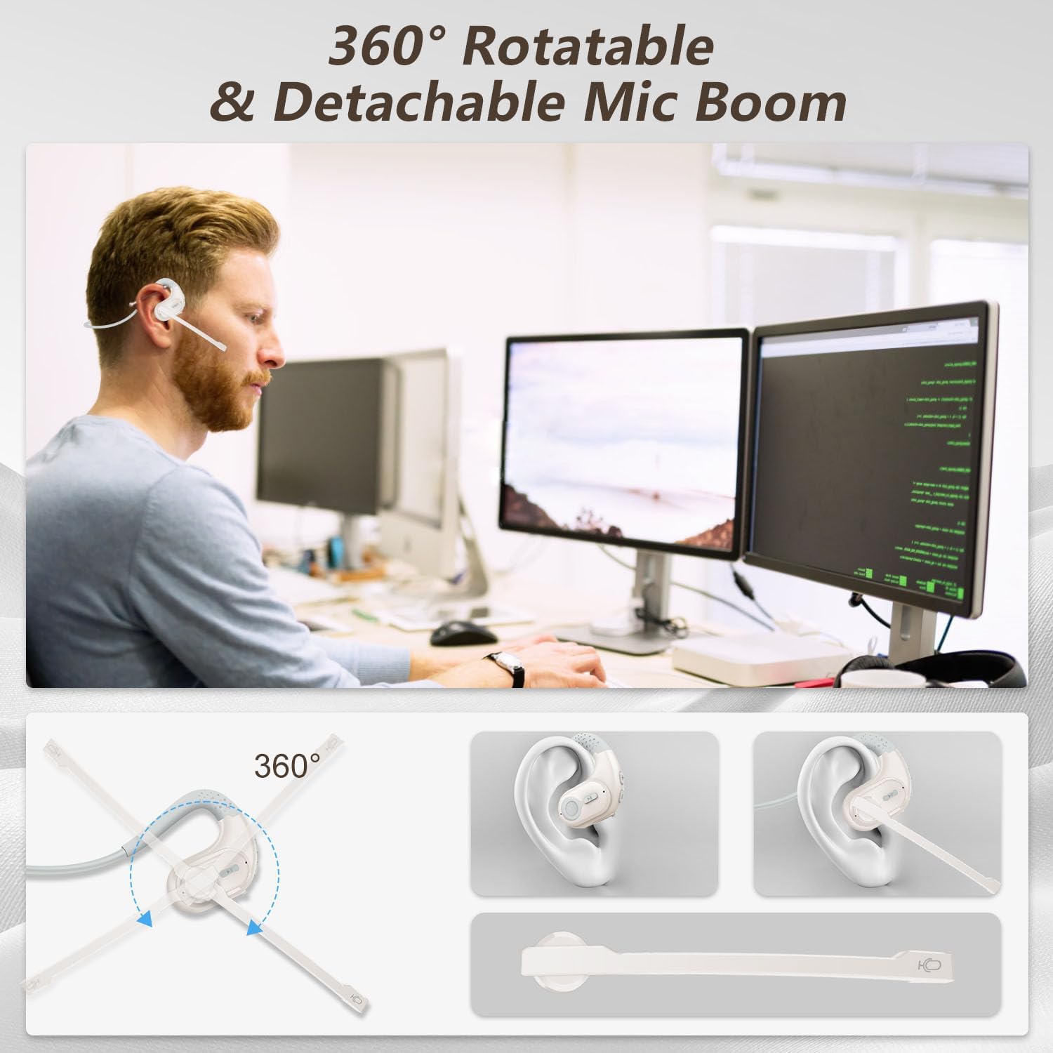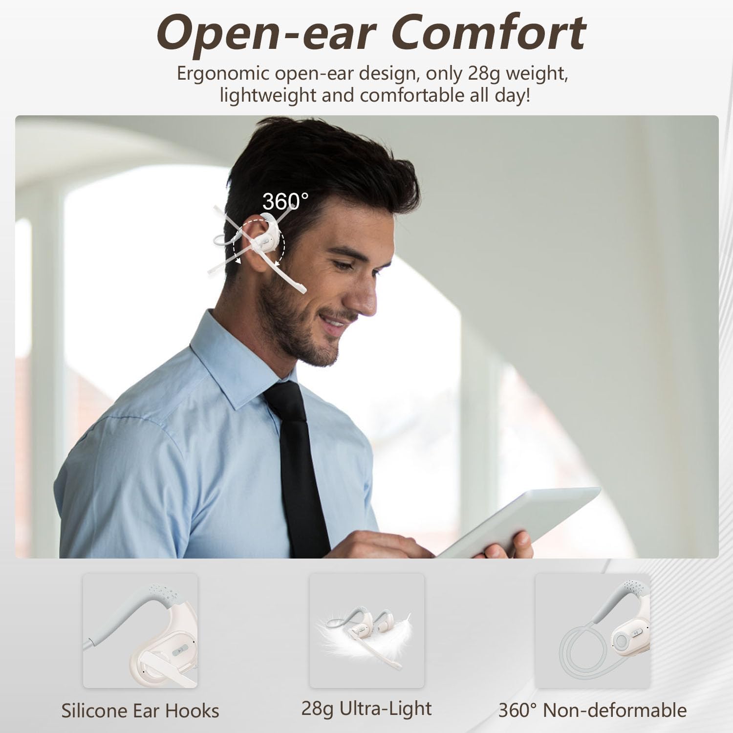 【Professional IPX5 Waterproof for Sports】Open ear headphones wireless Bluetooth with microphone has IPX5 rated waterproof, it's perfect for people who love sports, running, biking, hiking, skiing, snowboarding, working out! Bluetooth headset with noise cancelling mic is the best partner for office, conference, truck driver, online teaching/learning, call center, home work. (Note: It only protects against small amounts of sweat and rain and is not recommended for swimming!)