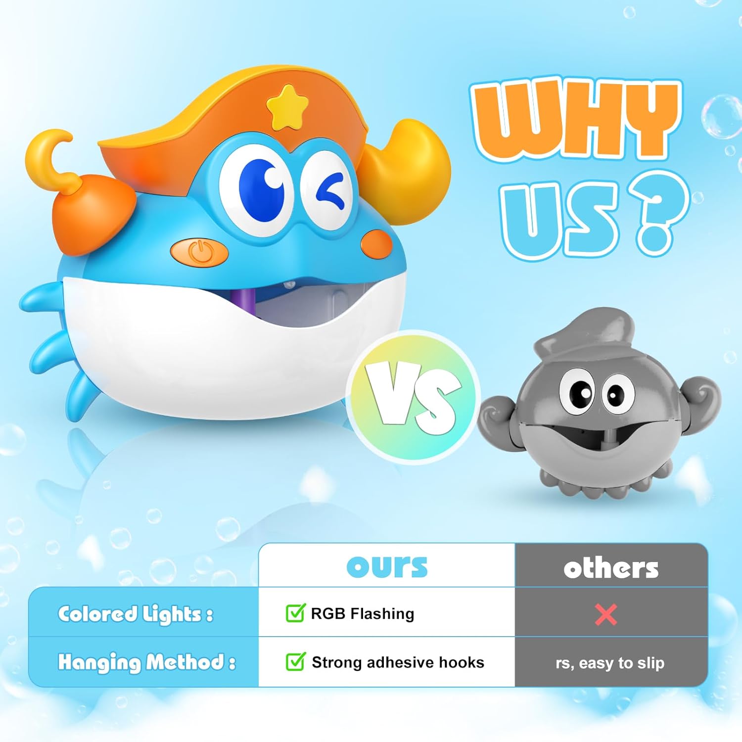 🌈Great Baby Bath Toys: Our crab bathtub bubble machine holds 230ml and has upgraded nozzles to prevent clogging. With just a small amount of bath soap and water (1:5 ratio), you can enjoy long-lasting bubble bath fun.Great bath toys for kids ages 1-3.(Requires 3 AA batteries, not provided)