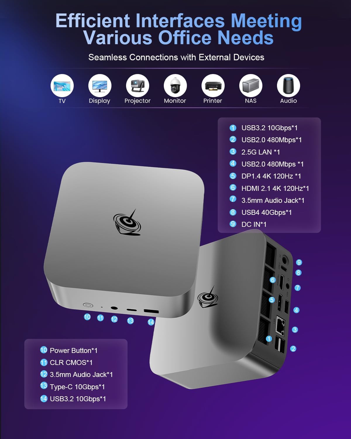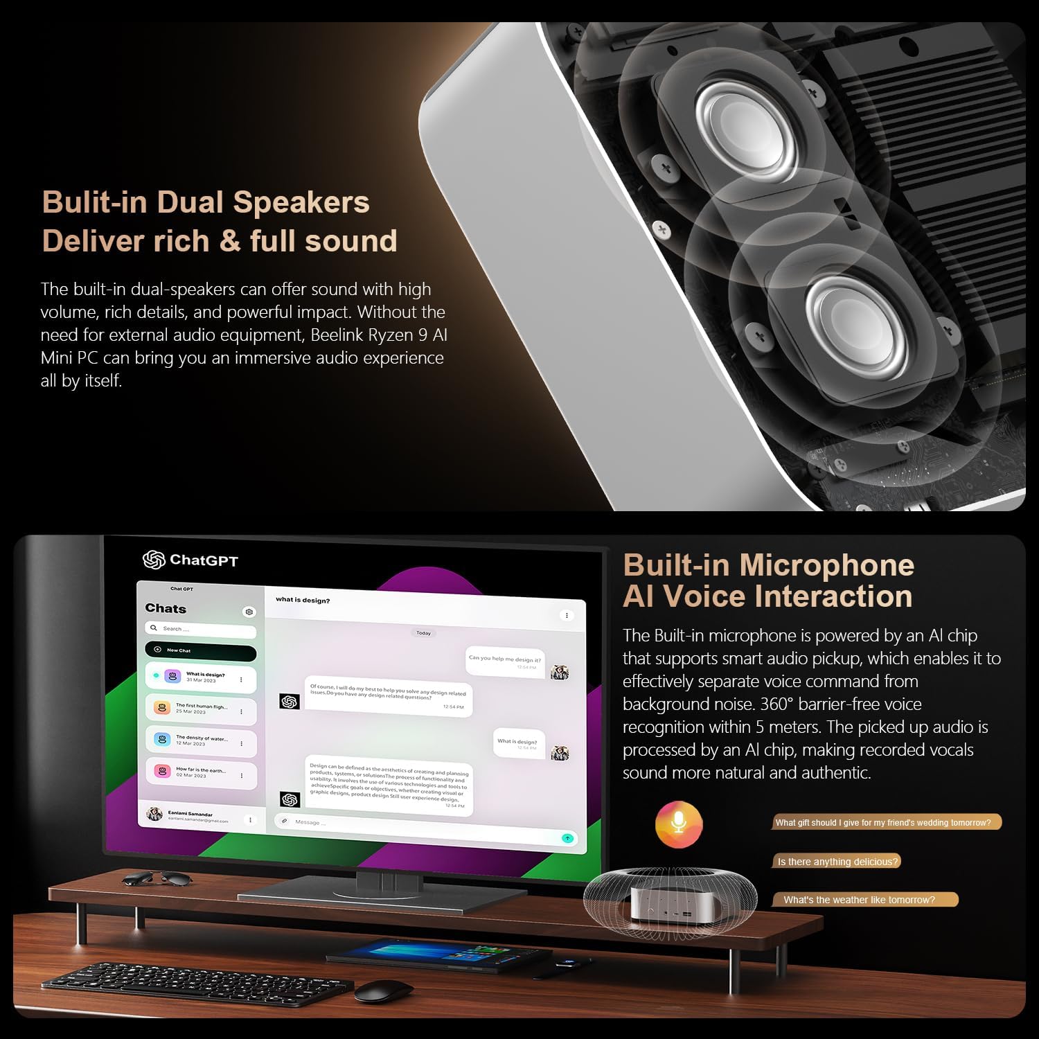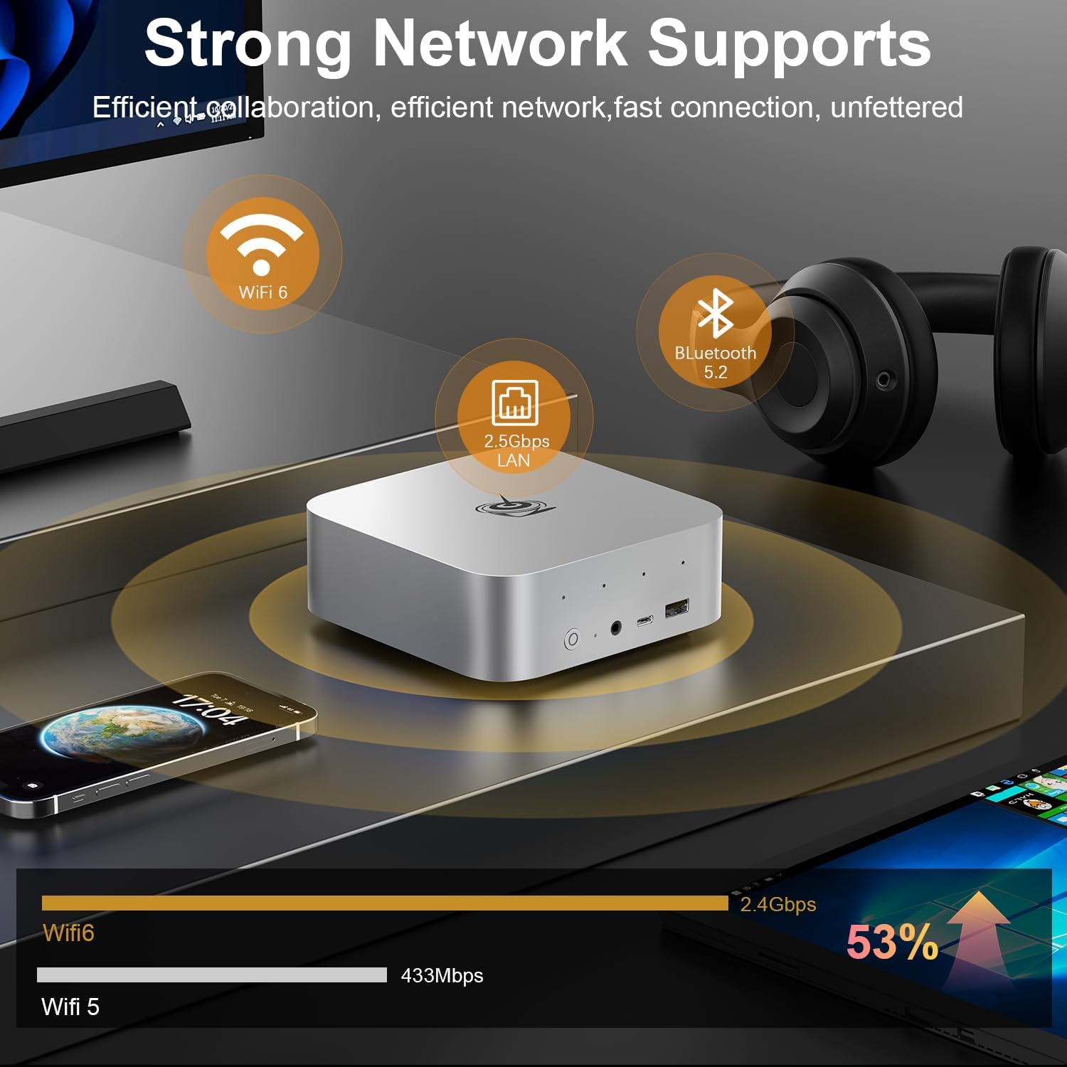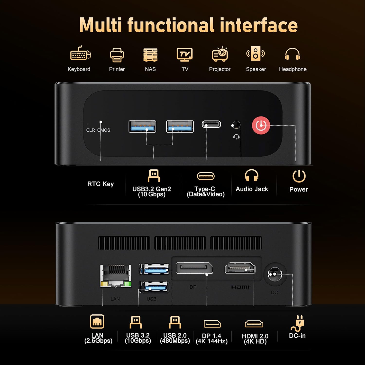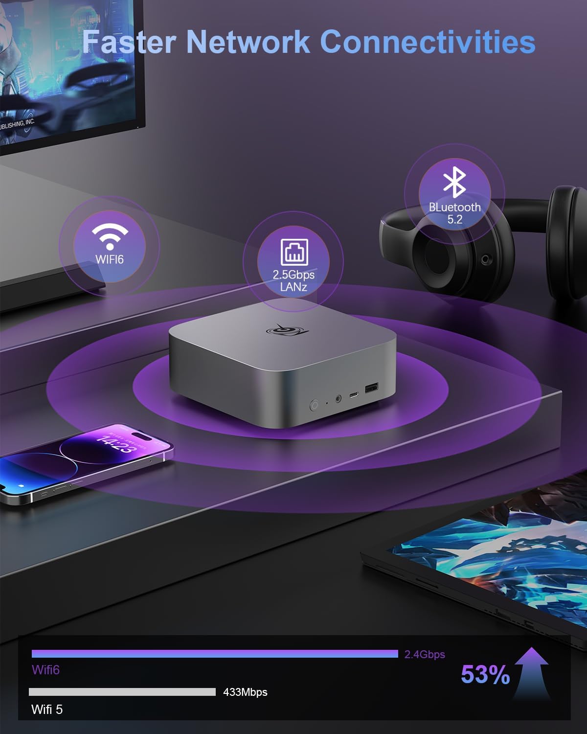 - 【High-speed Network Connectivity】Beelink mini pc ryzen 7 equipped with 2.5G LAN port, dual-band WiFi 6 (Intel AX200), transmission speed up to 2.4Gbps, three times faster than WiFi5. Lower latency Bluetooth5.2 brings faster data transfer, more stable and efficient to connect to multiple wireless devices such as projector, printer, monitor, speakers and etc