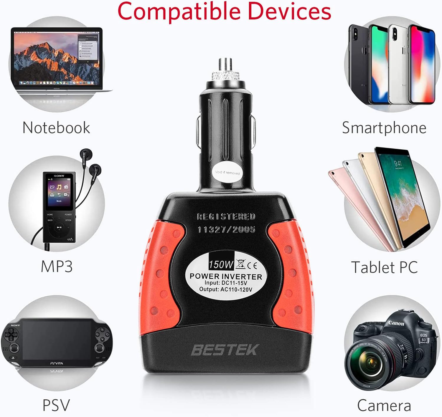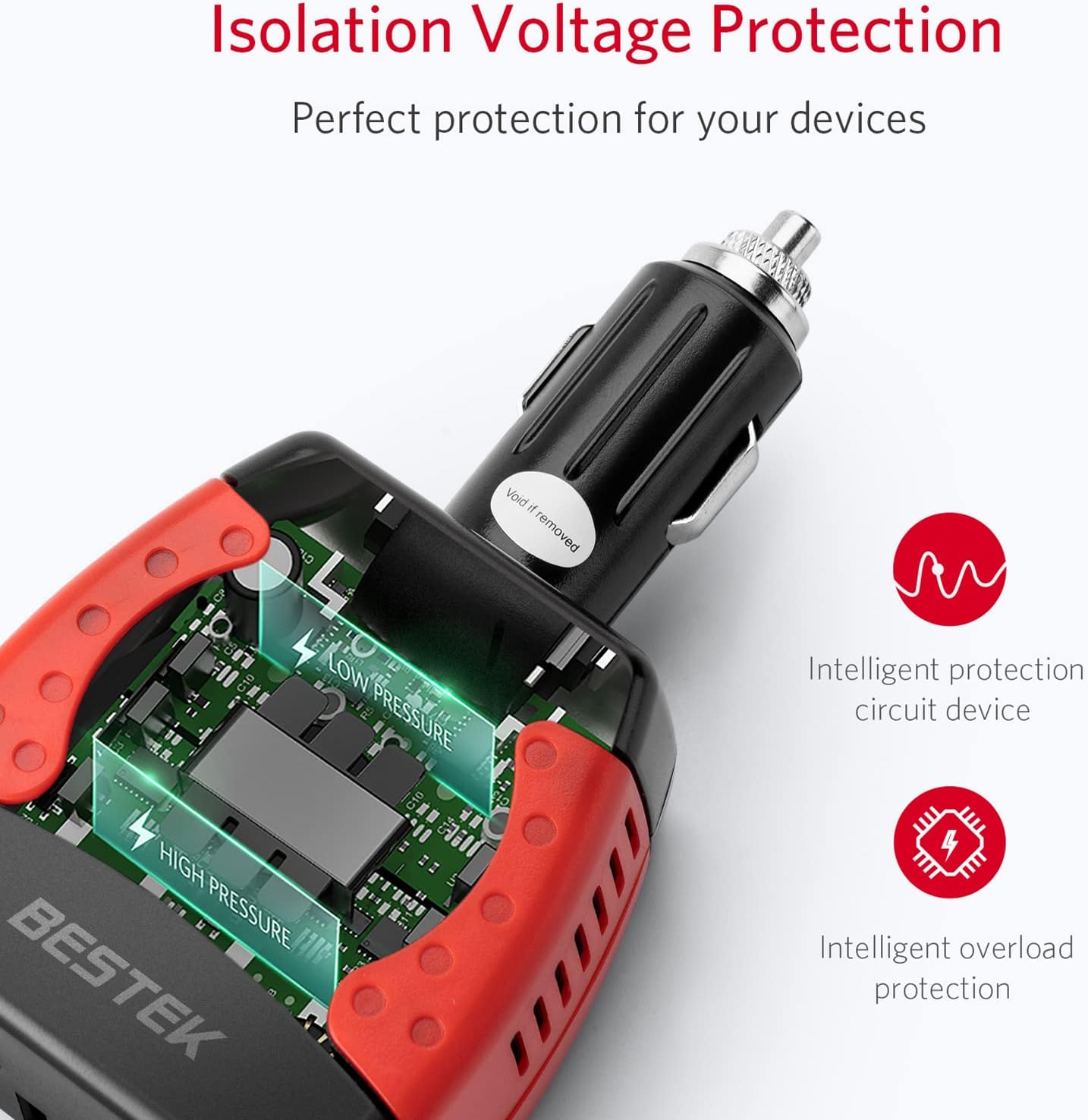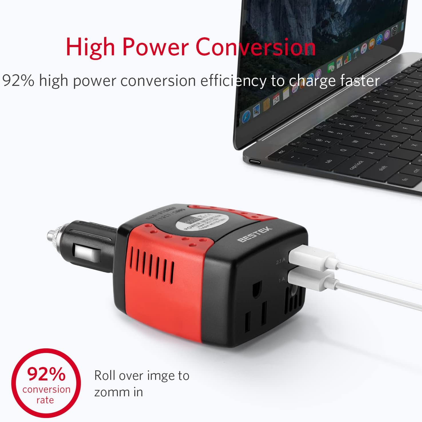 - BESTEK Advantage: America's #1 power inverter brand on Amazon. Provides 150 watts continuous DC to AC power and 360 watts of peak power