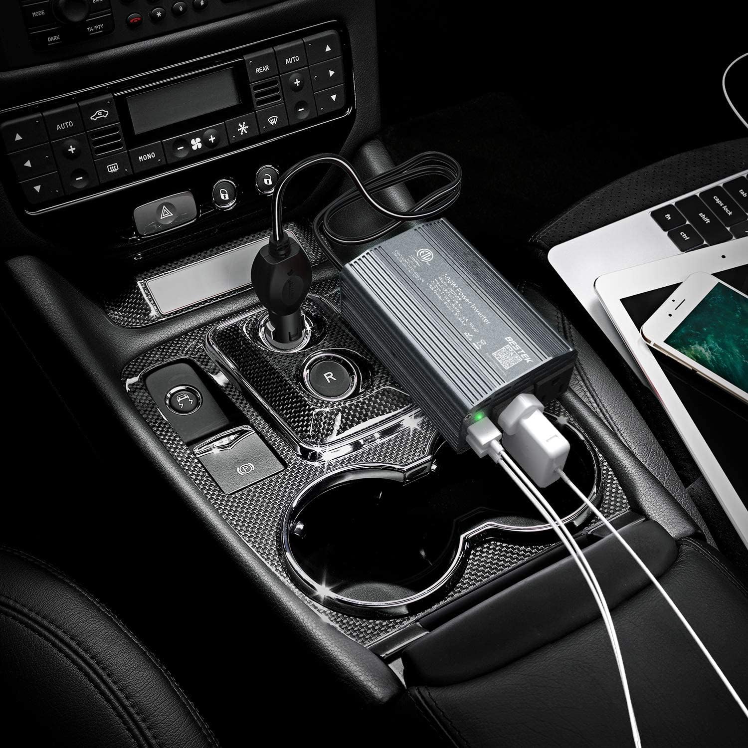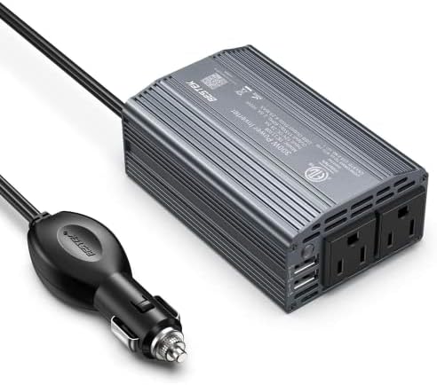 BESTEK Power Inverter DC 12V to AC 110V - 300W Car Plug Adapter Outlet with 4.8A Dual USB Fast Charging Port - Car Charger Cigarette Lighter Adapter for Phone, Laptop on Road Trip - Aluminum Housing