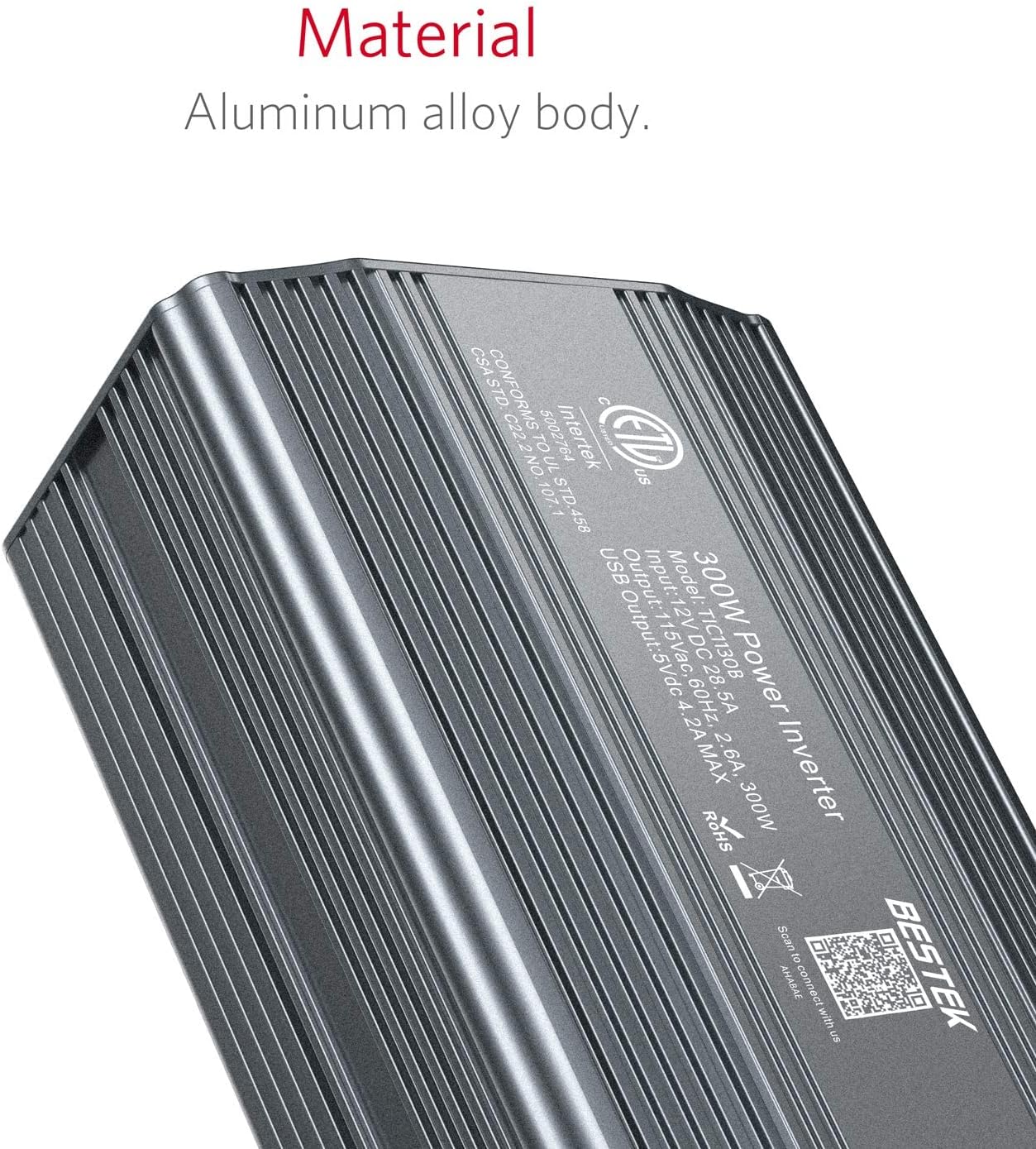 - Durable Aerospace Aluminum Housing: Bestek car inverter provides advanced protection from drops and bumps.Smart cooling fan system makes the car power inverter very silent when operating,and the fan runs faster when the device gets warmer or output power exceeds 70W