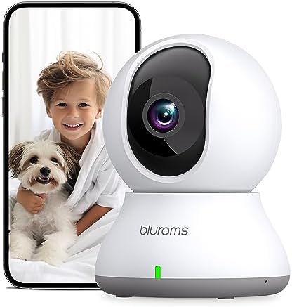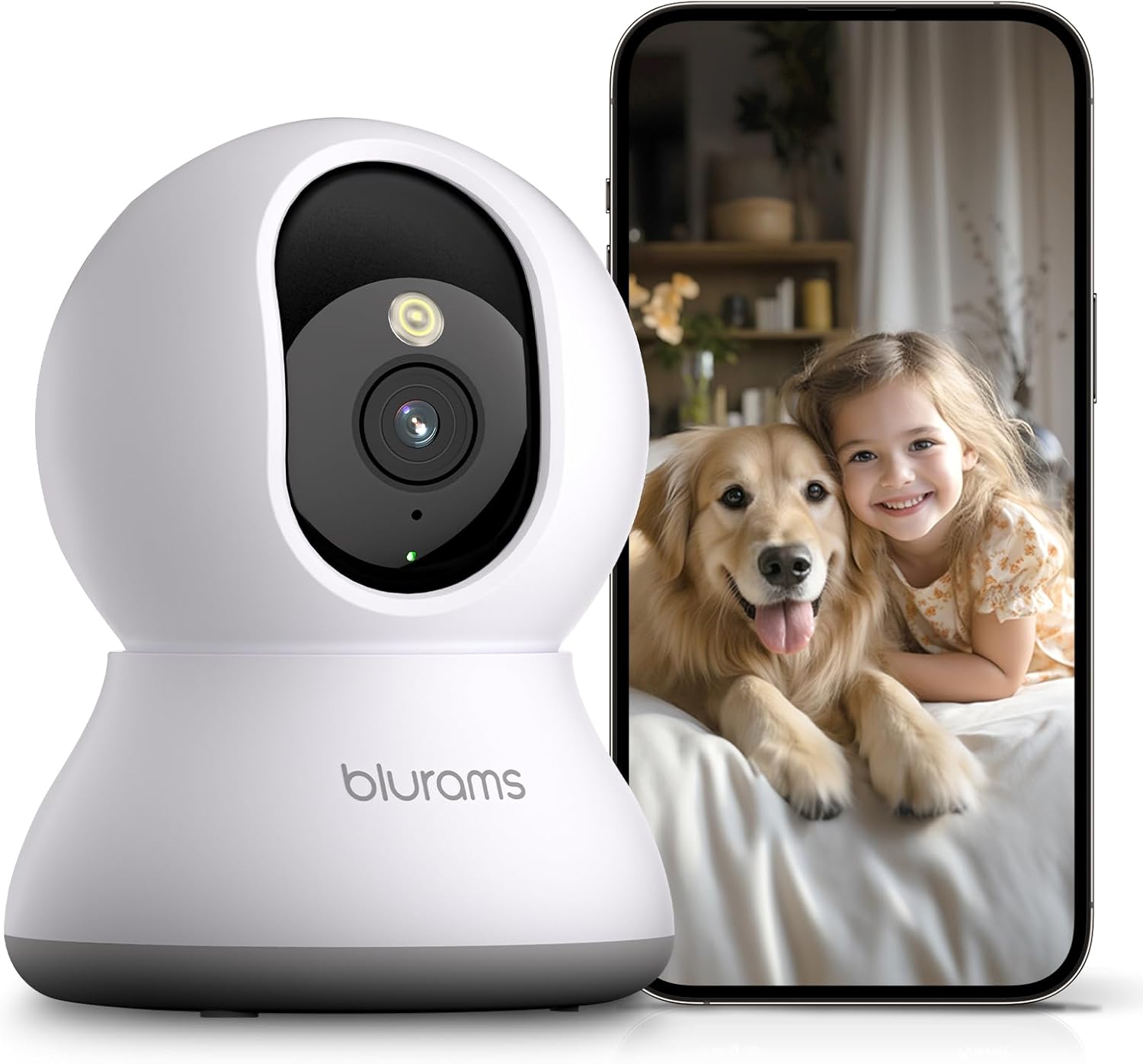 blurams Security Camera, 2K Indoor Camera 360-degree Pet Camera for Home Security w/ Motion Tracking, Phone App, 2-Way Audio, IR Night Vision, Siren, Works with Alexa & Google Assistant,White