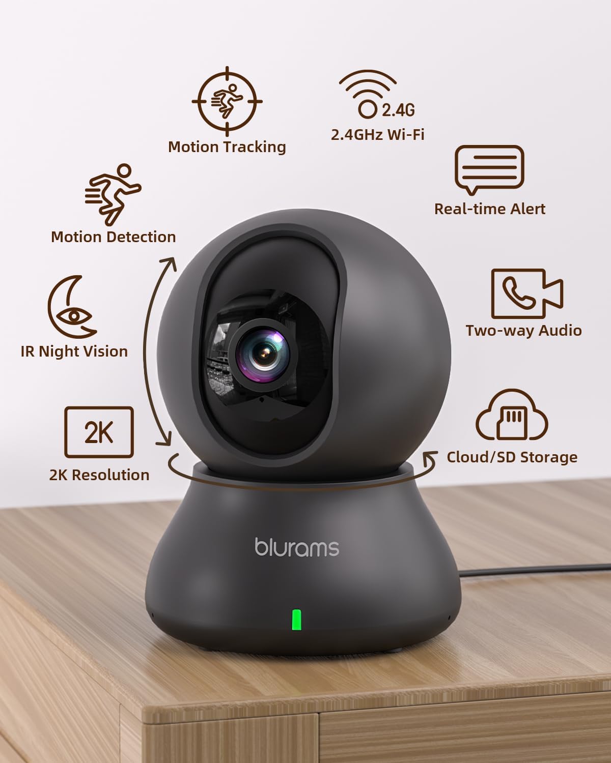 - 360°Coverage with 2K Resolution - blurams security camera automatically tracks the motion if detect motion. Features in IR-CUT function to capture crisp videos and photos from the day to night, even in the dim condition. Turn on privacy mode to protect your privacy.