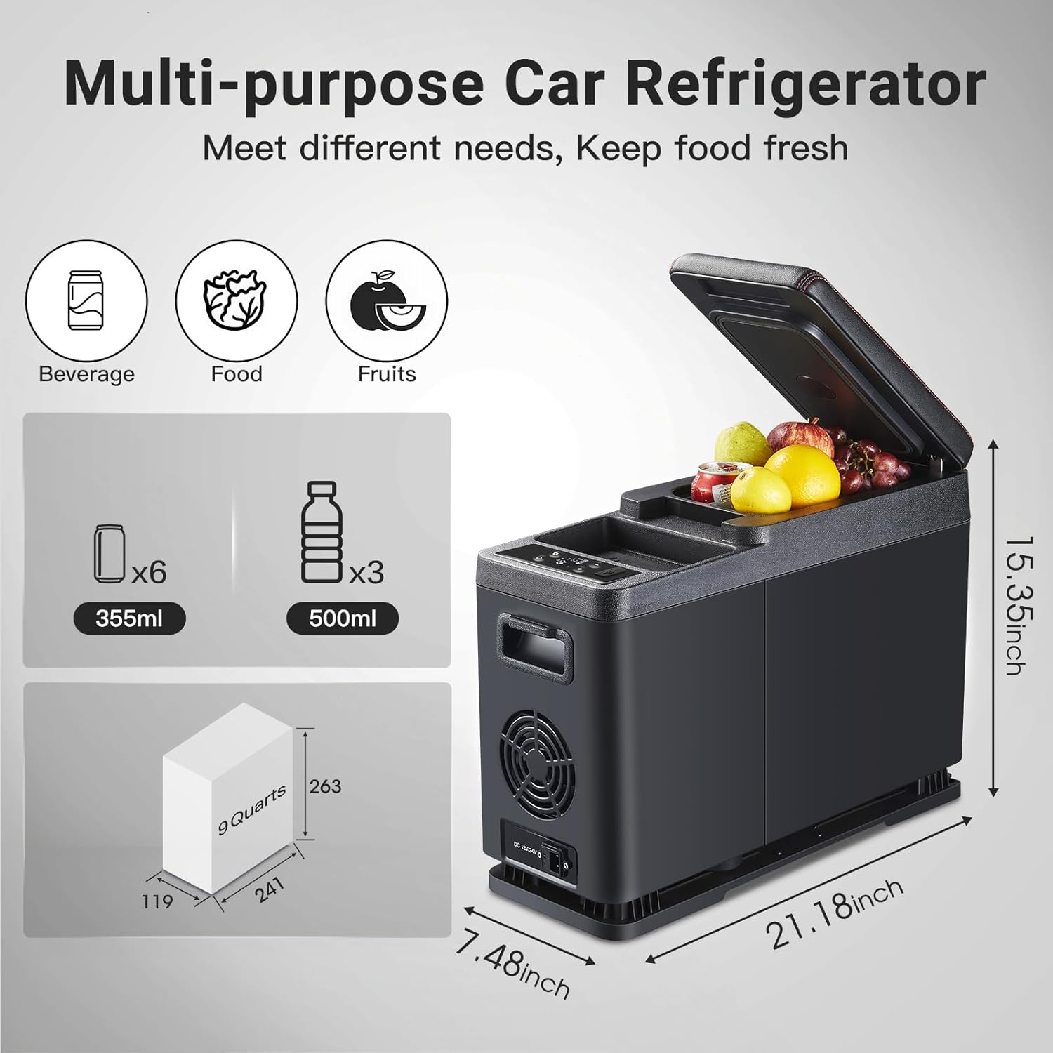 BODEGA 12V Truck Refrigerator,9 Quart Small Car Fridge,Camping Fridge WIFI Control,(5℉-68℉) Electric Car Cooler 12/24V DC for Camper,Travel,Boat,Van,SUV,Vehicles,Road Trip(Shoulder Hold Design)