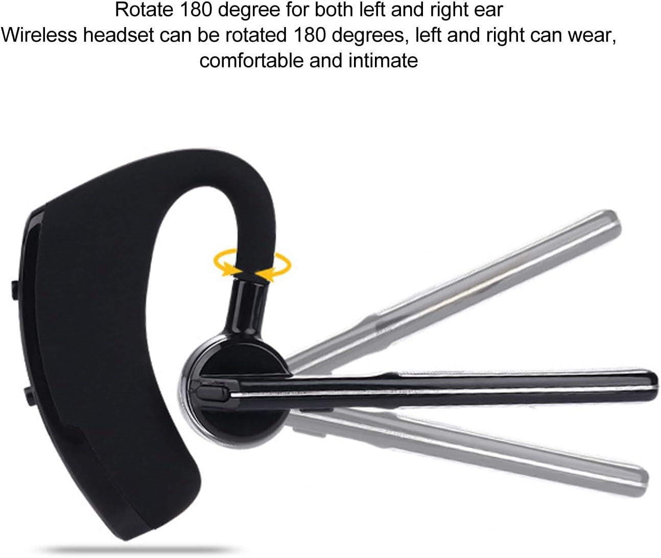 BT Earpiece, Cordless Handsfree Headset with Microphone, Noise Cancelling Single Ear Headset, Driving BT Headset for Phone Business Office Cell Phone