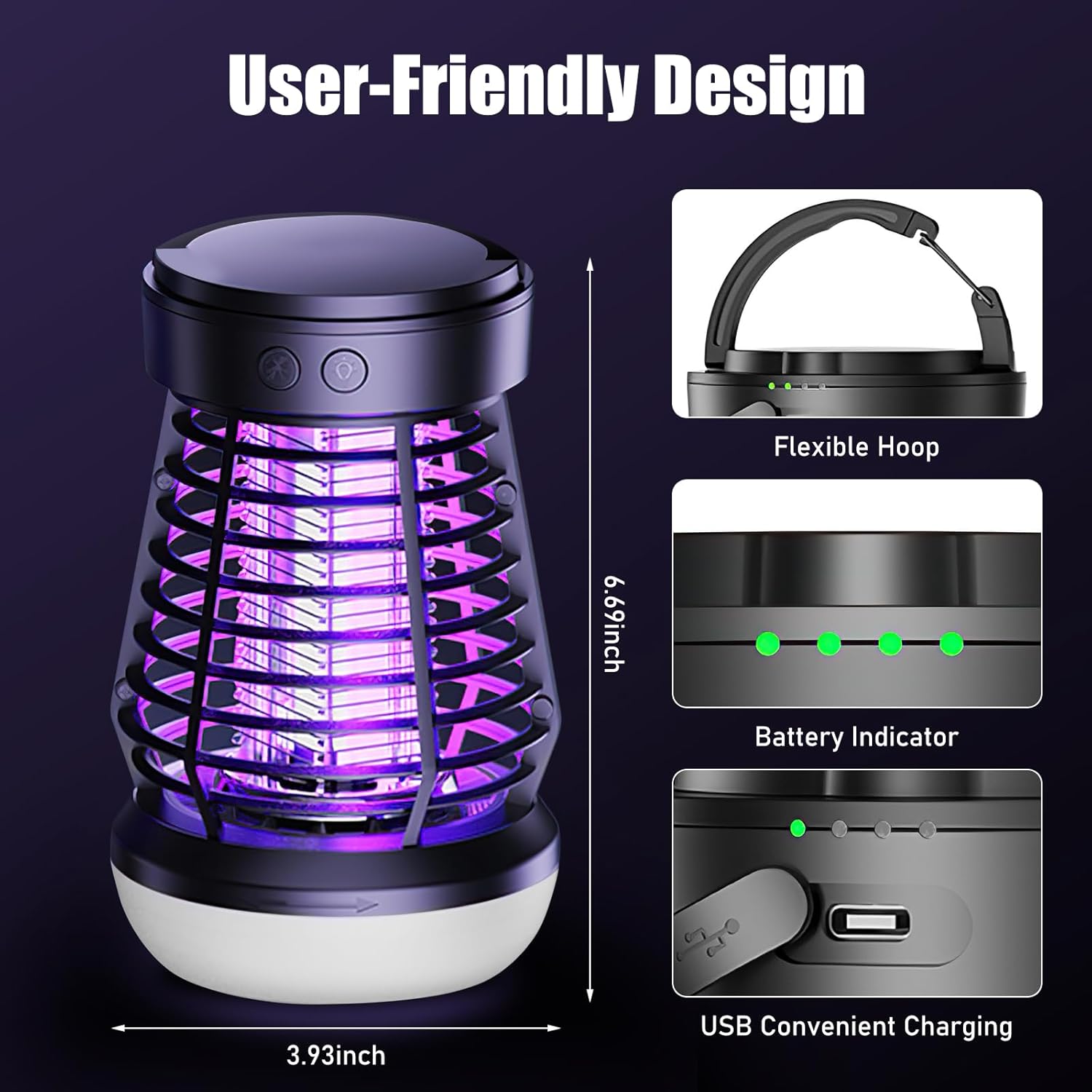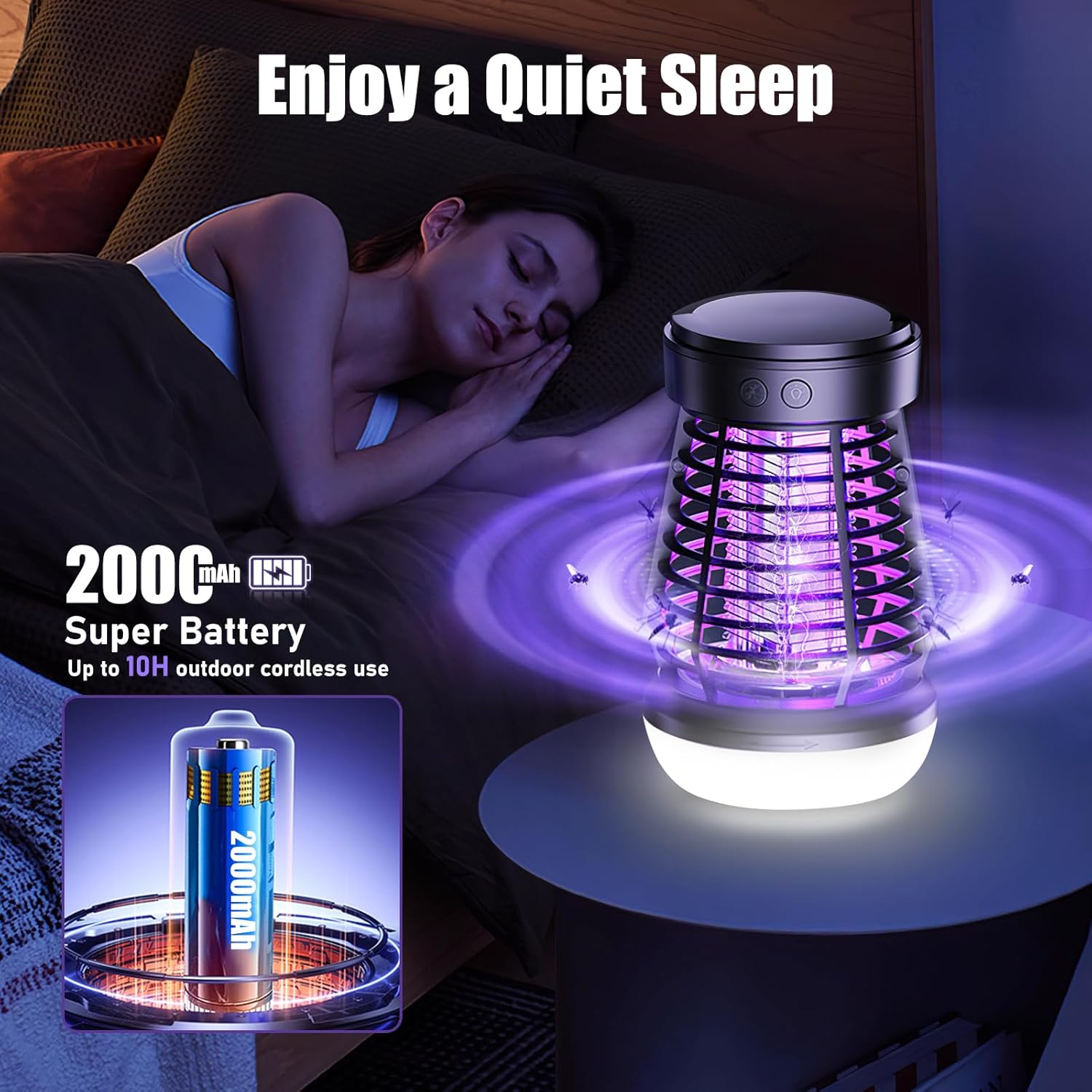 - 【Rechargeable Outdoor Bug Zapper】The electric bug zapper is equipped with a 2000mAh rechargeable battery and a LED night light, up to 10 hours of use time(Only in mosquito zapper mode). You can use USB cord to fully charge your mosquito killer lamp in 4 hours. This is an excellent choice for your outdoor activities.