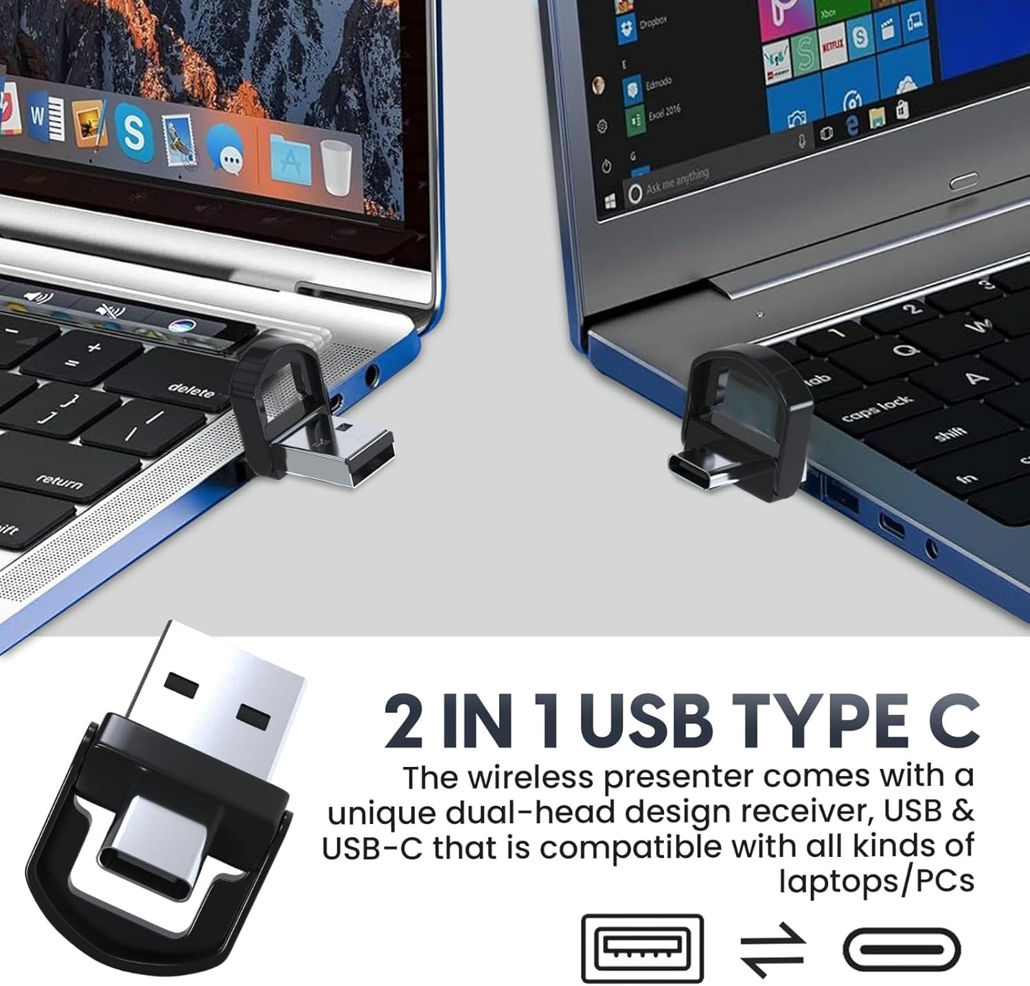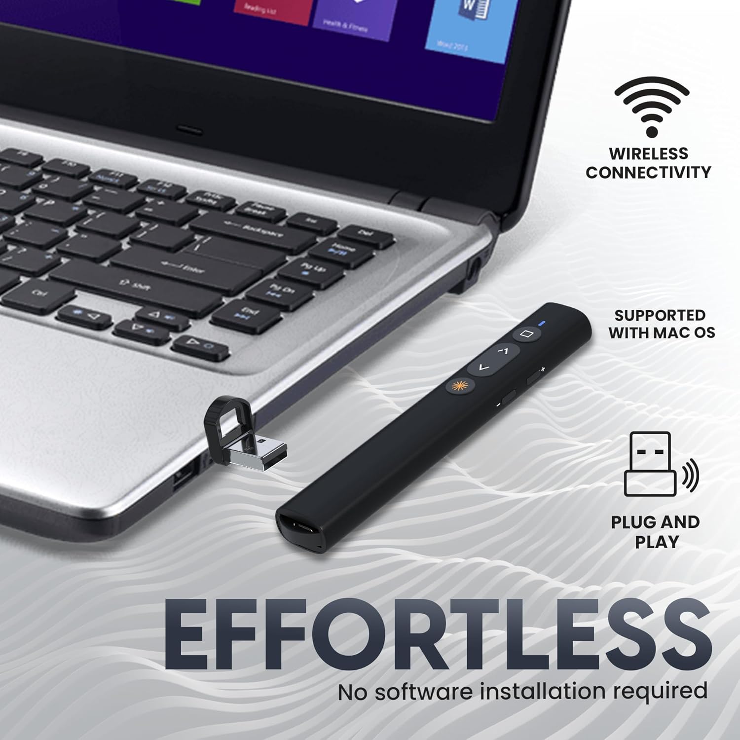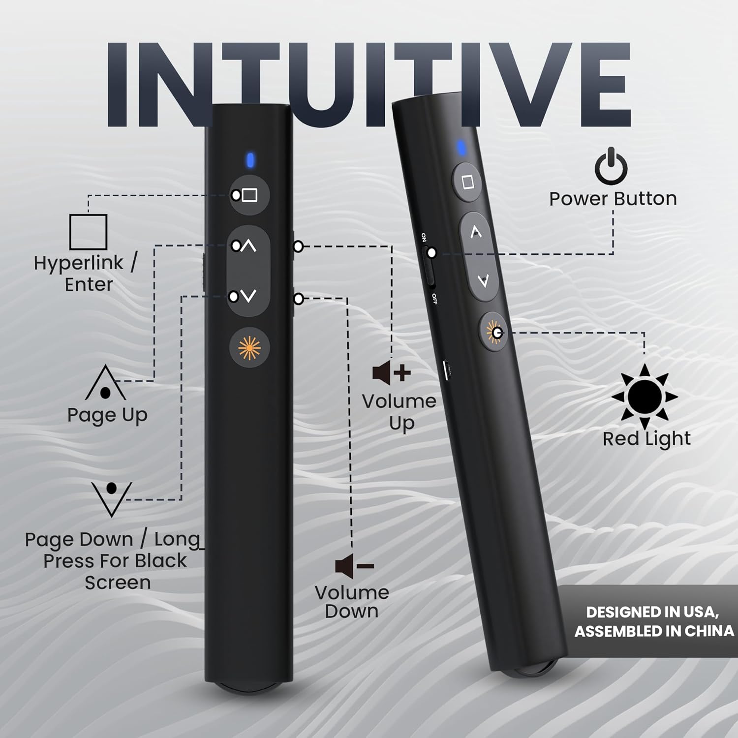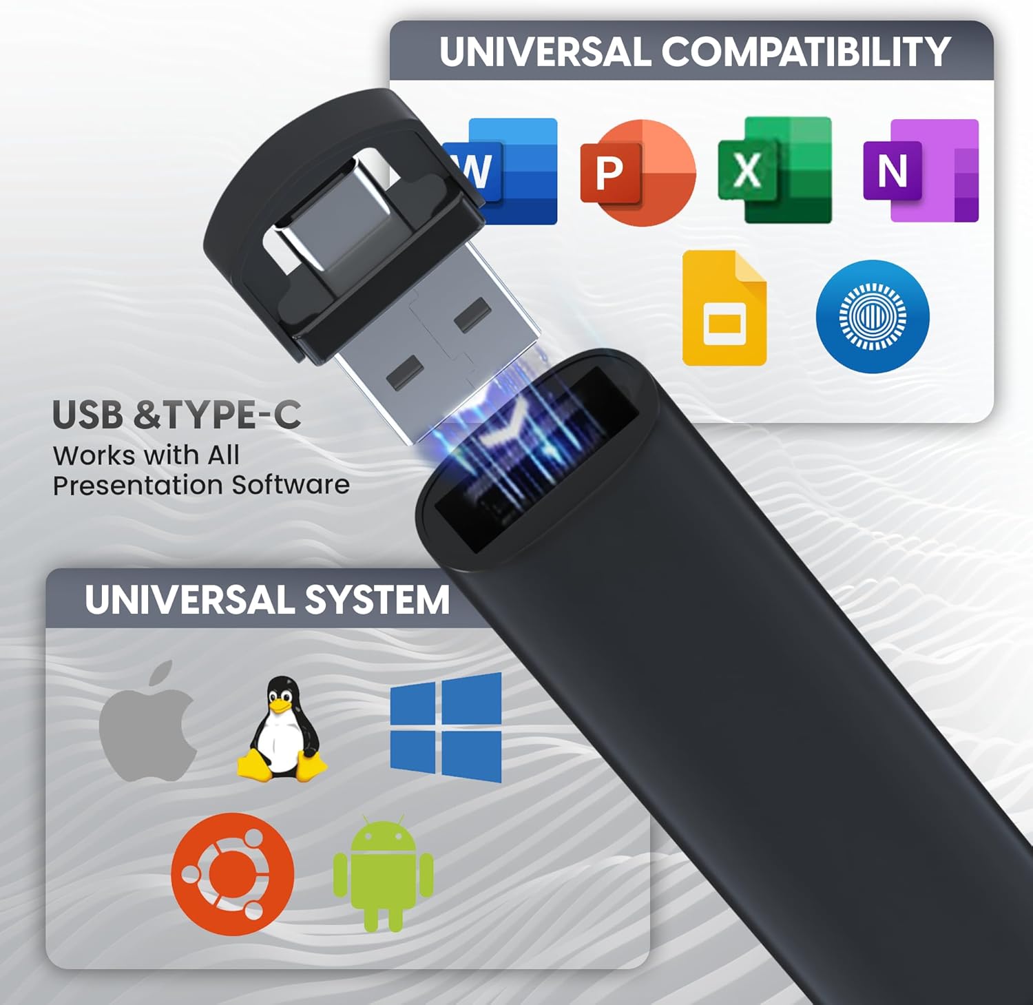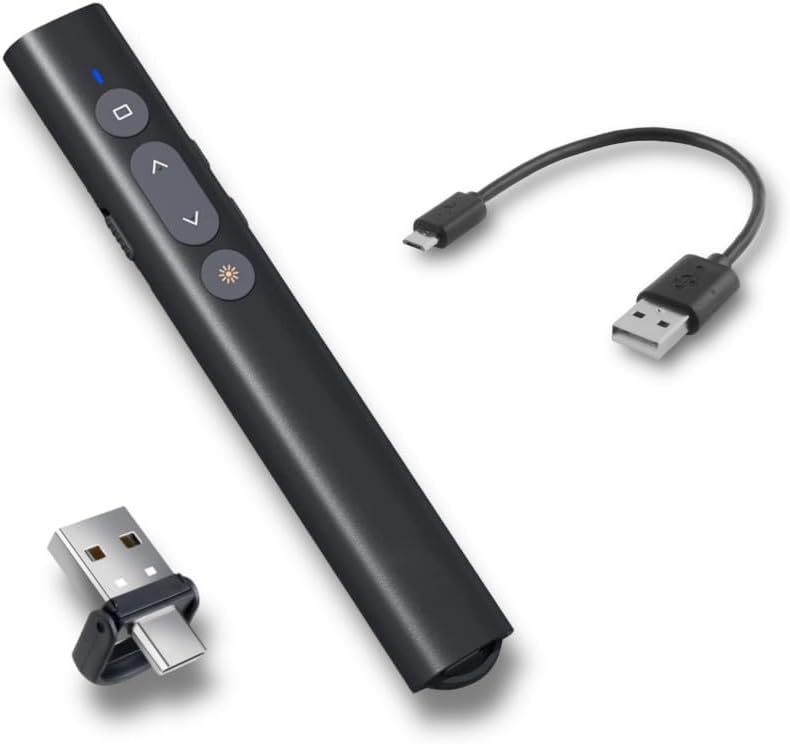 【 WIRELESS LASER POINTER 】: Use as a laser pointer from a long distance. Bright Red light, helps you point at stuff on the screen while you present. It has great performance and is very portable.